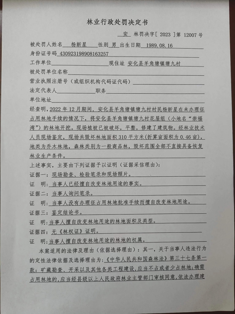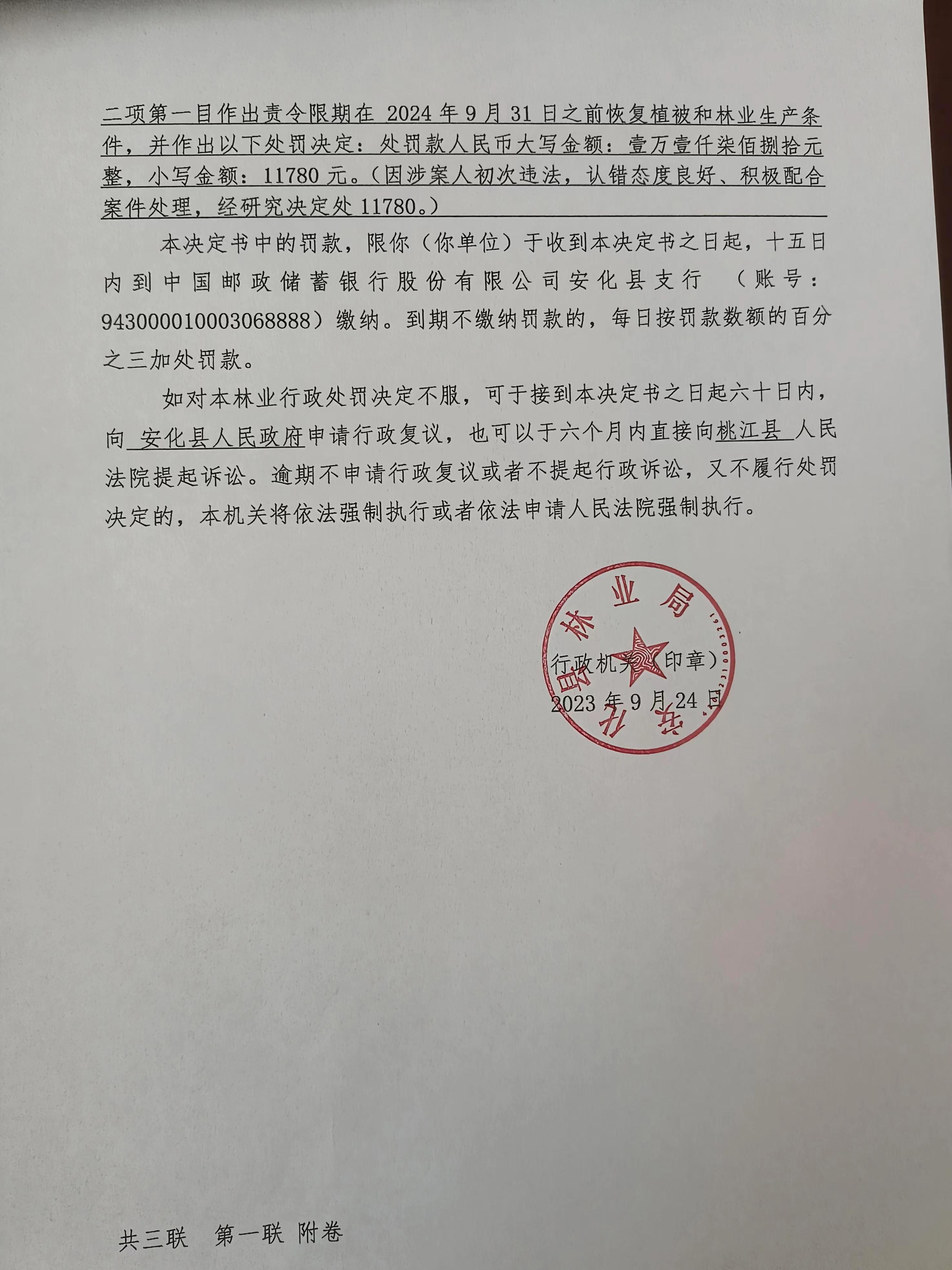 林业行政处罚决定书(安林罚决字[2023]第12007号)