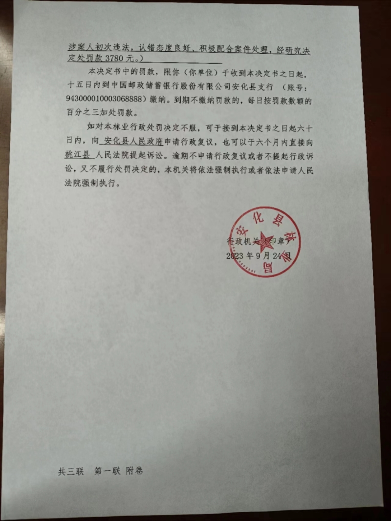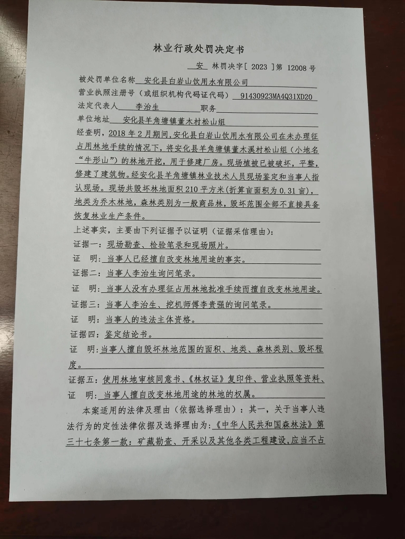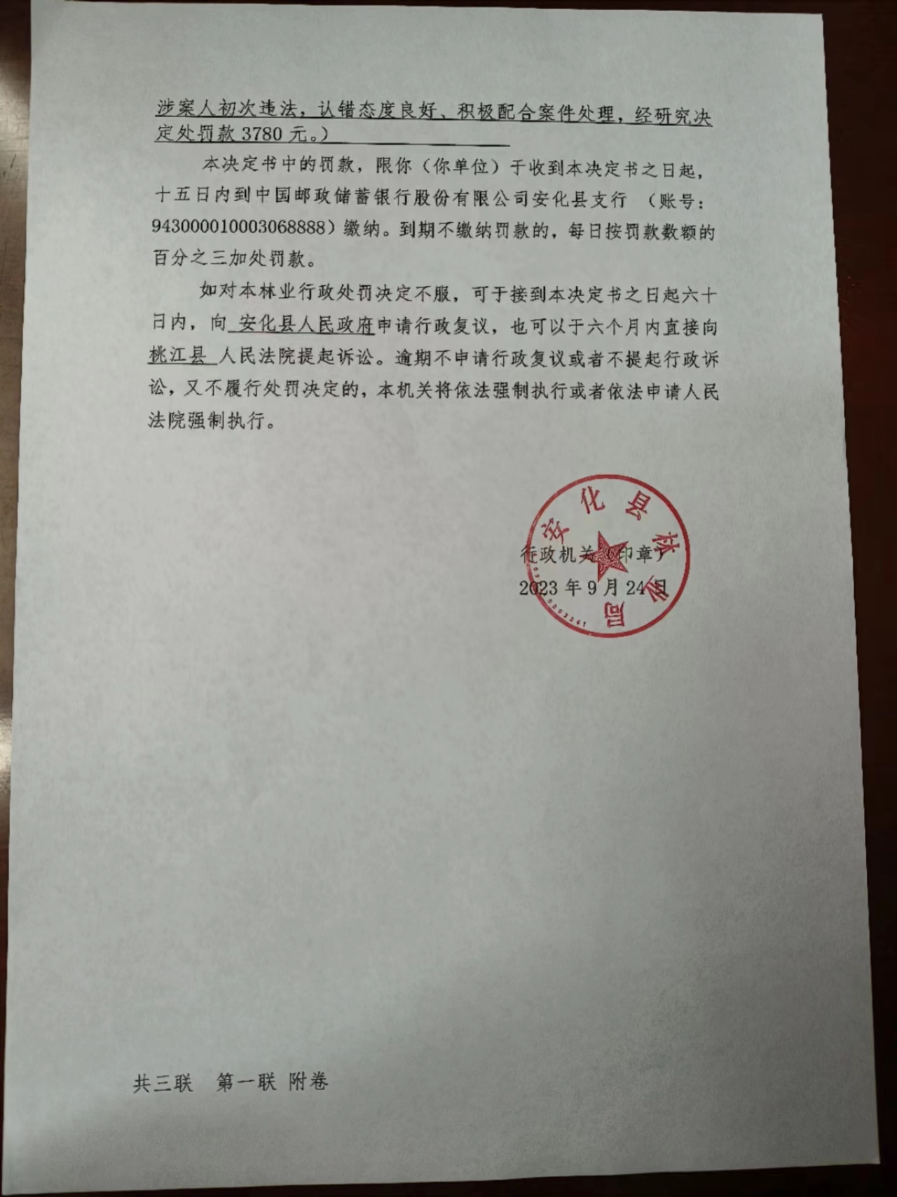 林业行政处罚决定书(安林罚决字[2023]第12008号)
