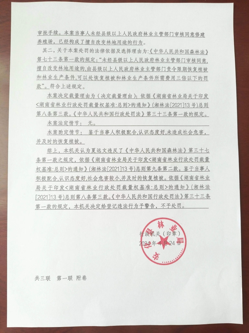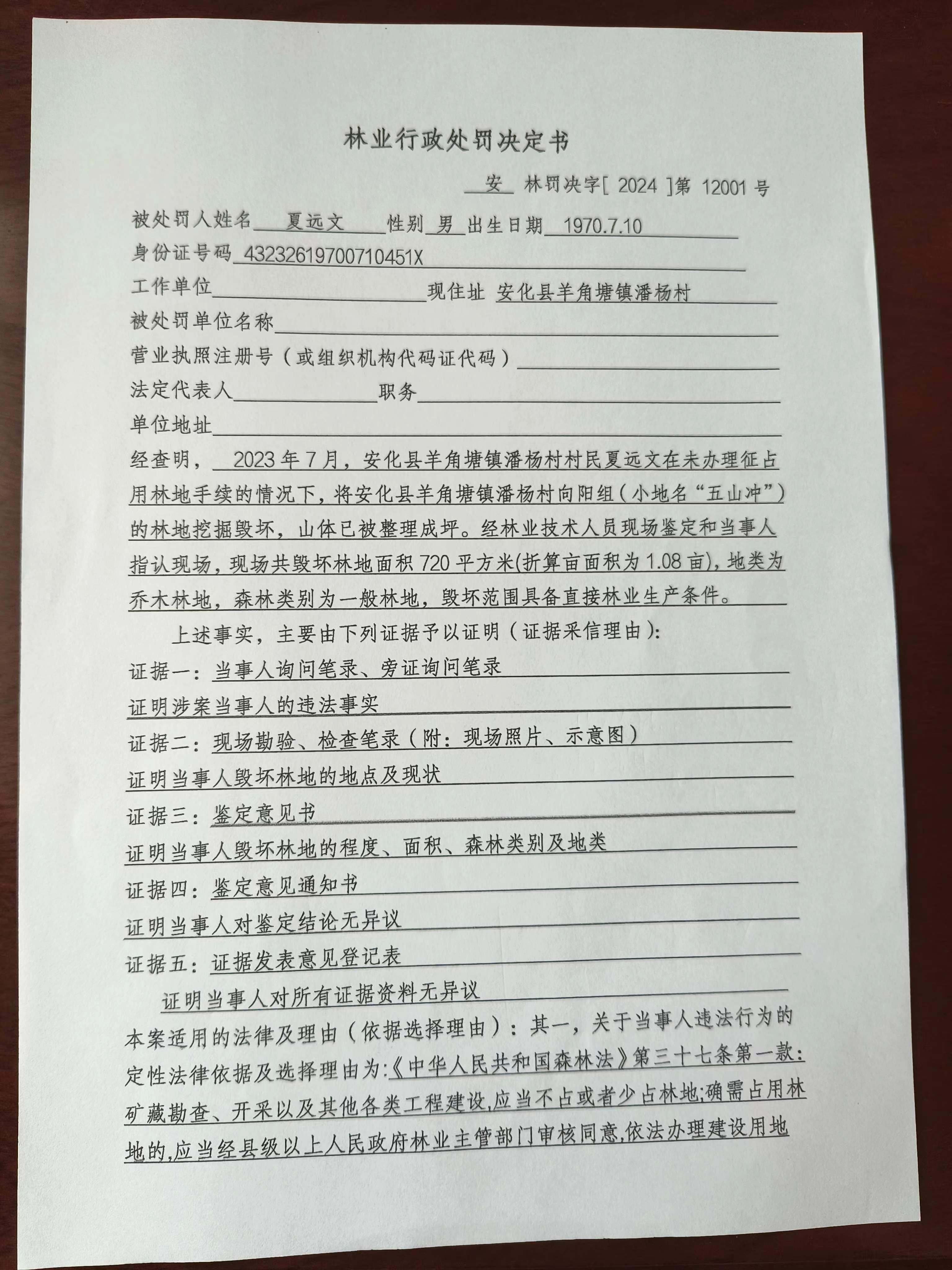 林业行政处罚决定书(安林罚决字[2024]第12001号)