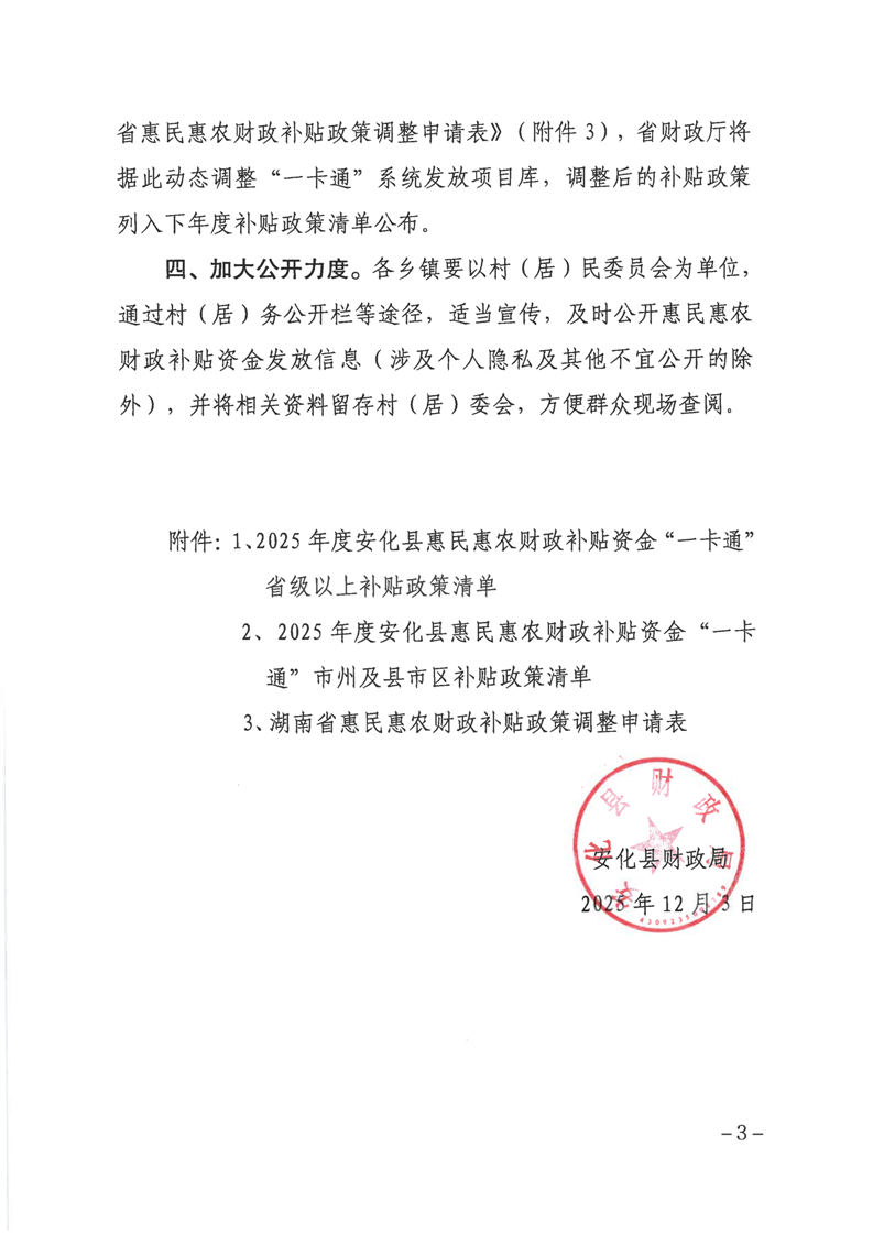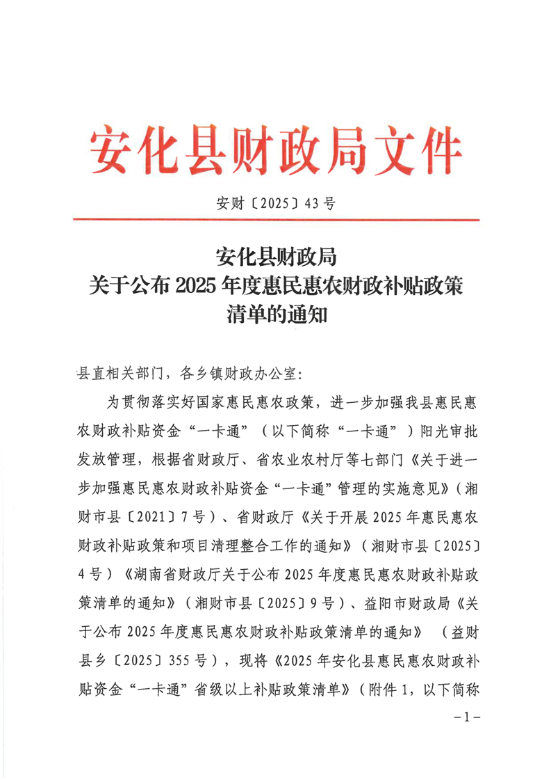 关于公布2025年惠民惠农财政补贴政策清单的通知