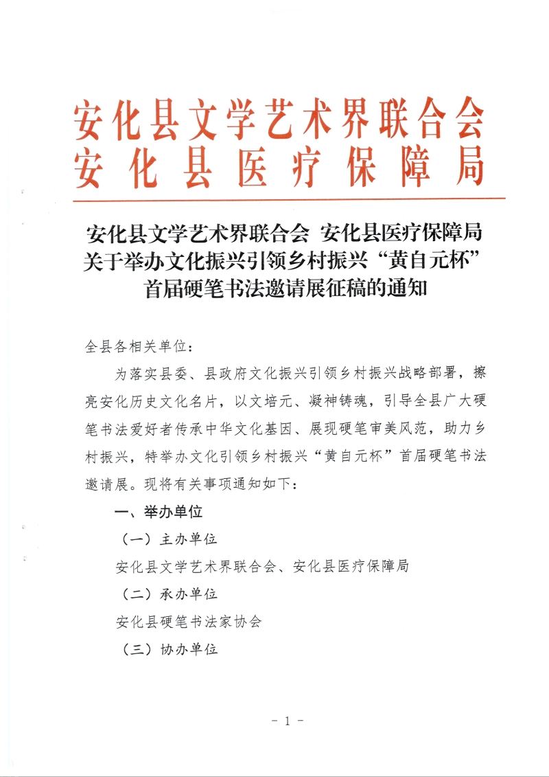 关于举办文化振兴引领乡村振兴“黄自元杯”首届硬笔书法邀请展征稿的通知