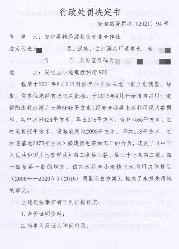 行政处罚决定书(安自然资罚决〔2021〕94号)