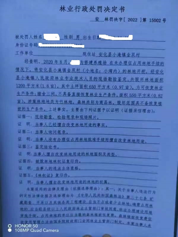 林业行政处罚决定书 安林罚决字[2022]第15002号
