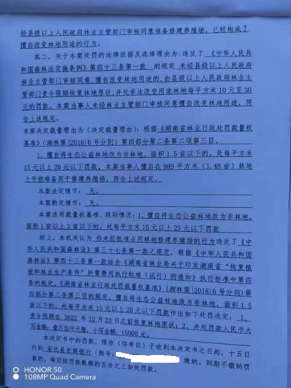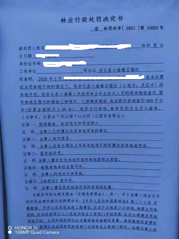 林业行政处罚决定书 安林罚决字[2021]第15003号