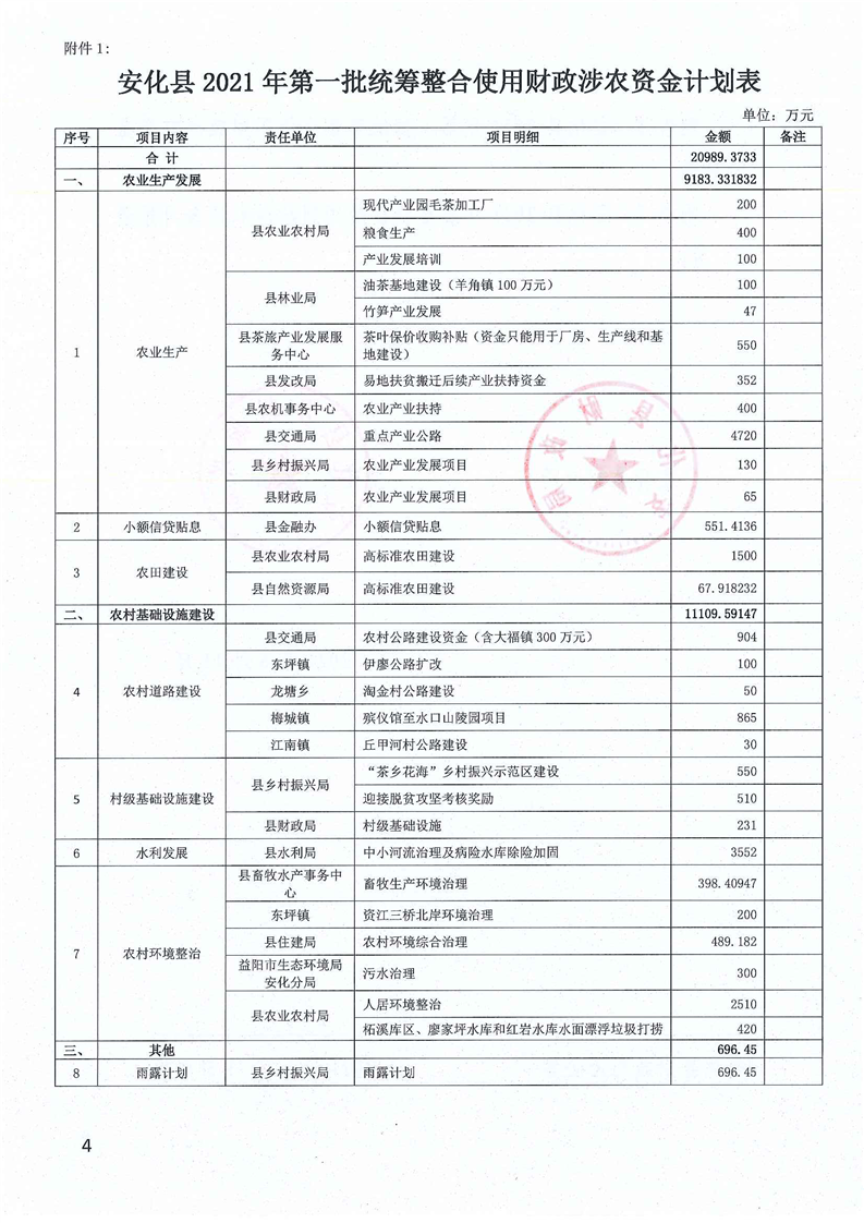 关于下达2021年第一批统筹整合使用财政涉农资金计划的通知
