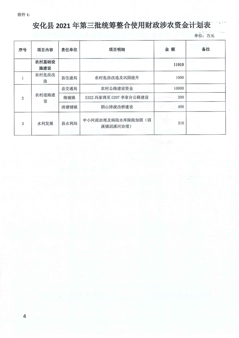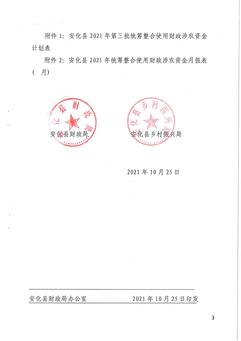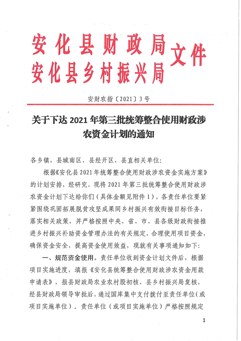 关于下达2021年第三批统筹整合使用财政涉农资金计划的通知