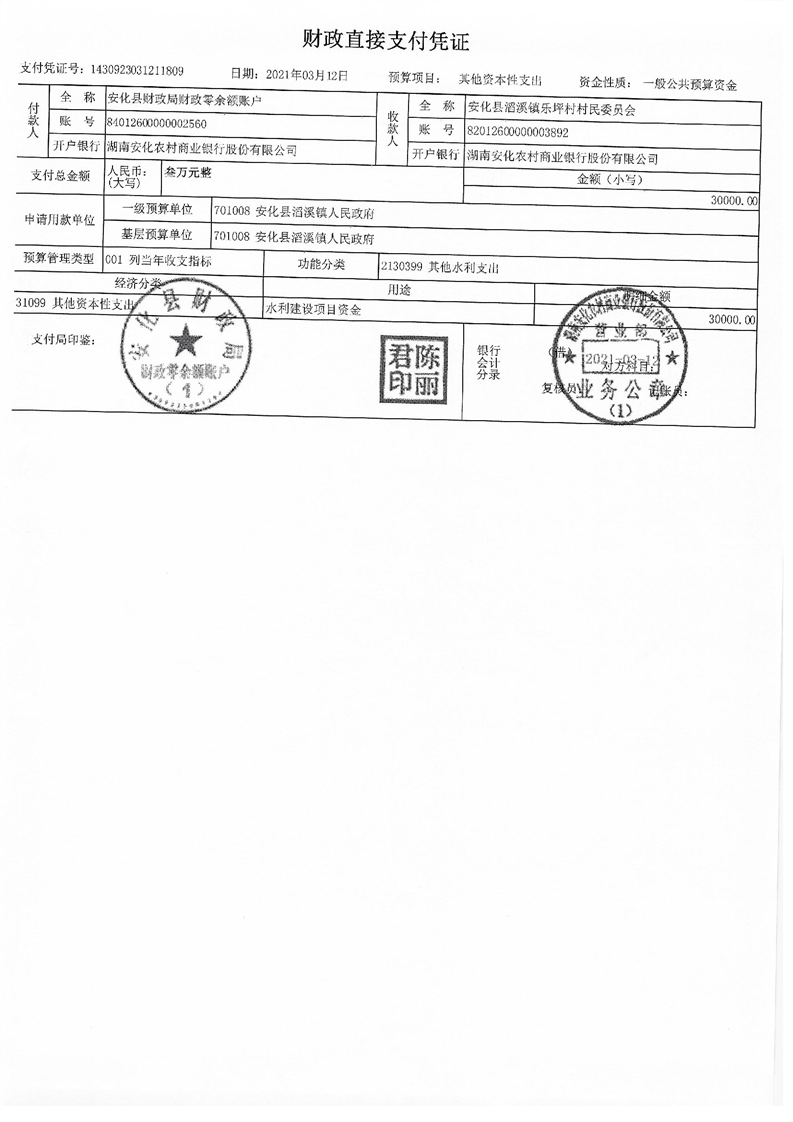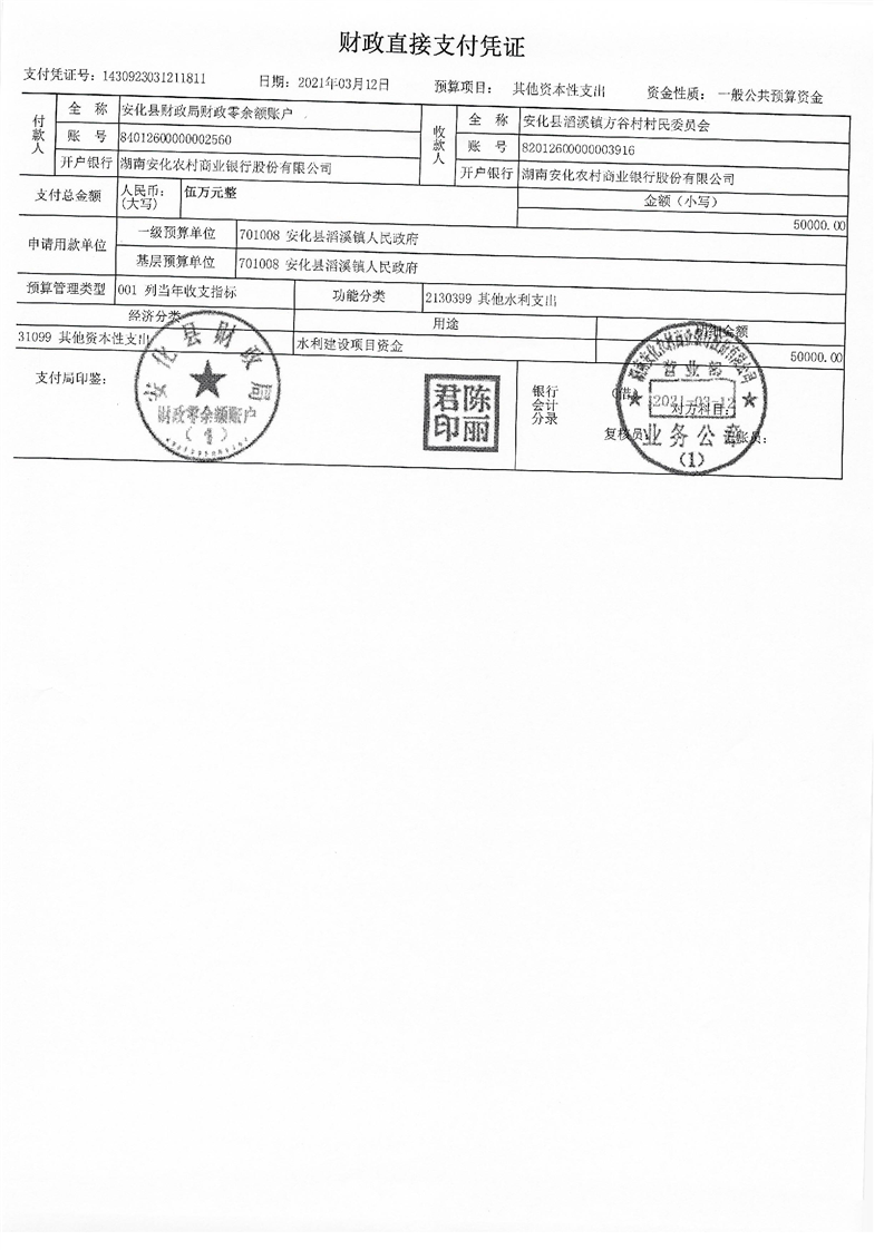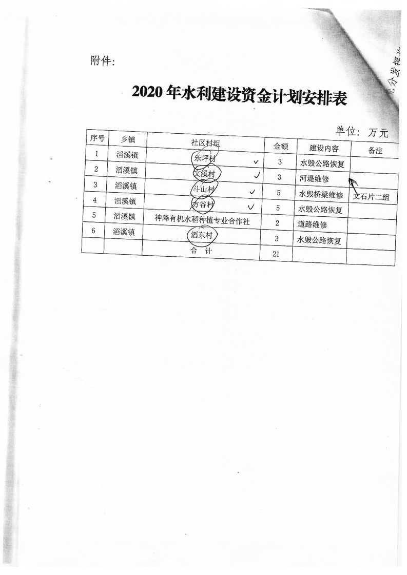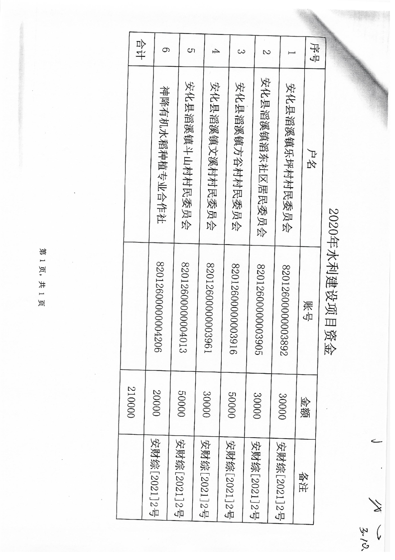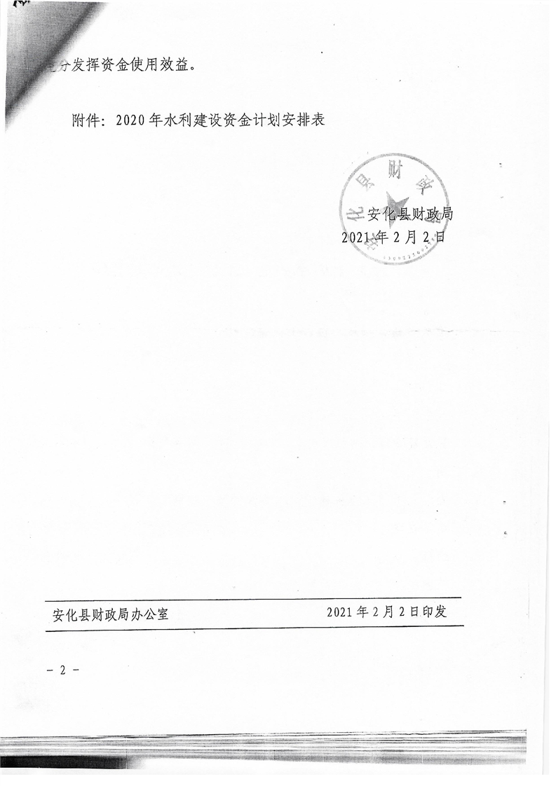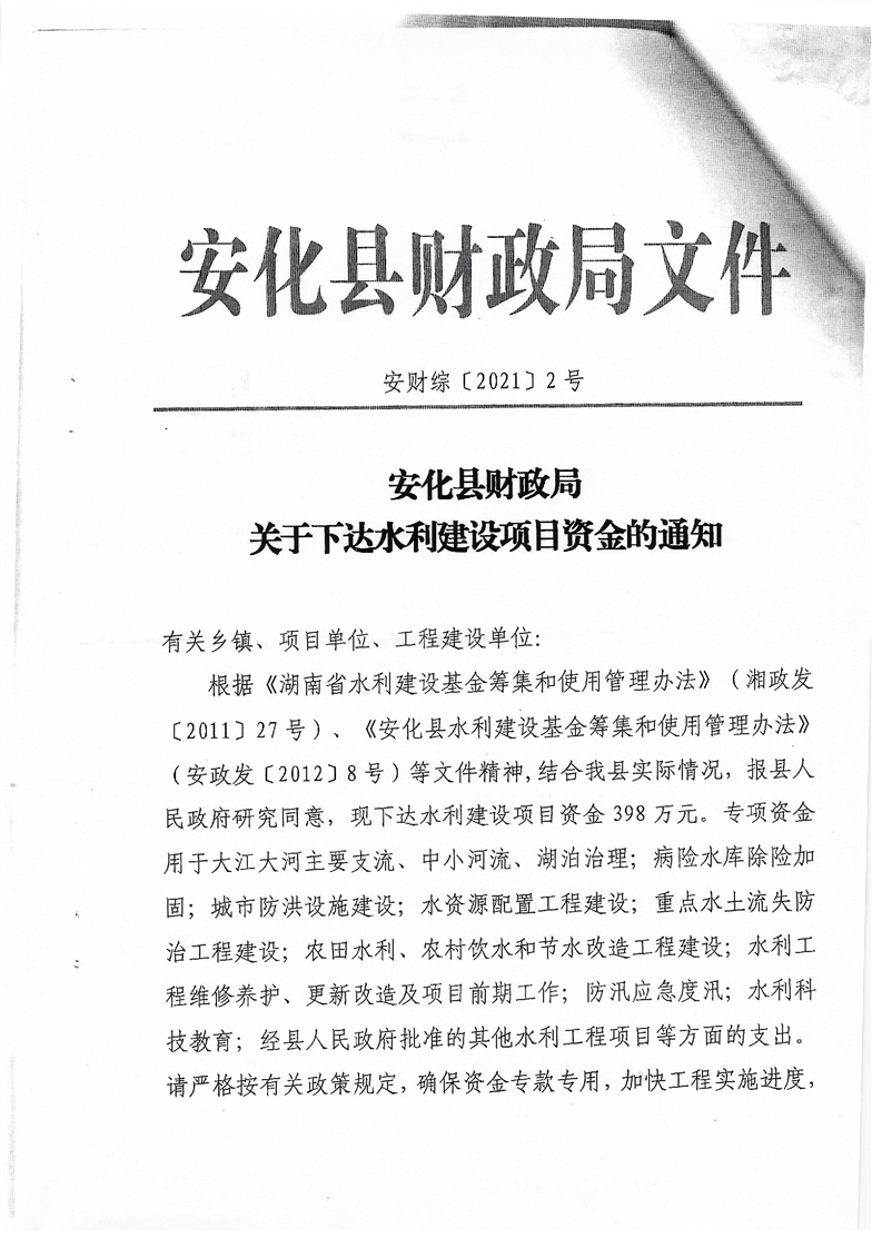 关于下达水利建设项目资金的通知(安财综【2021】2号)