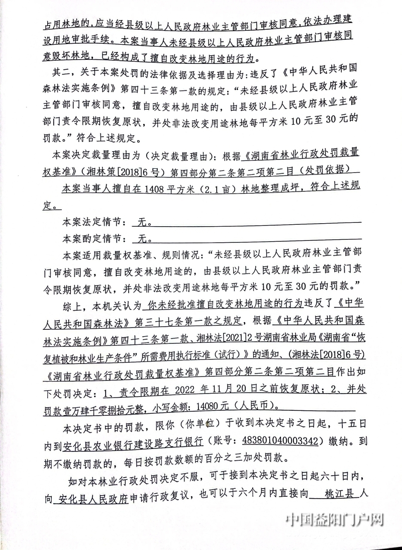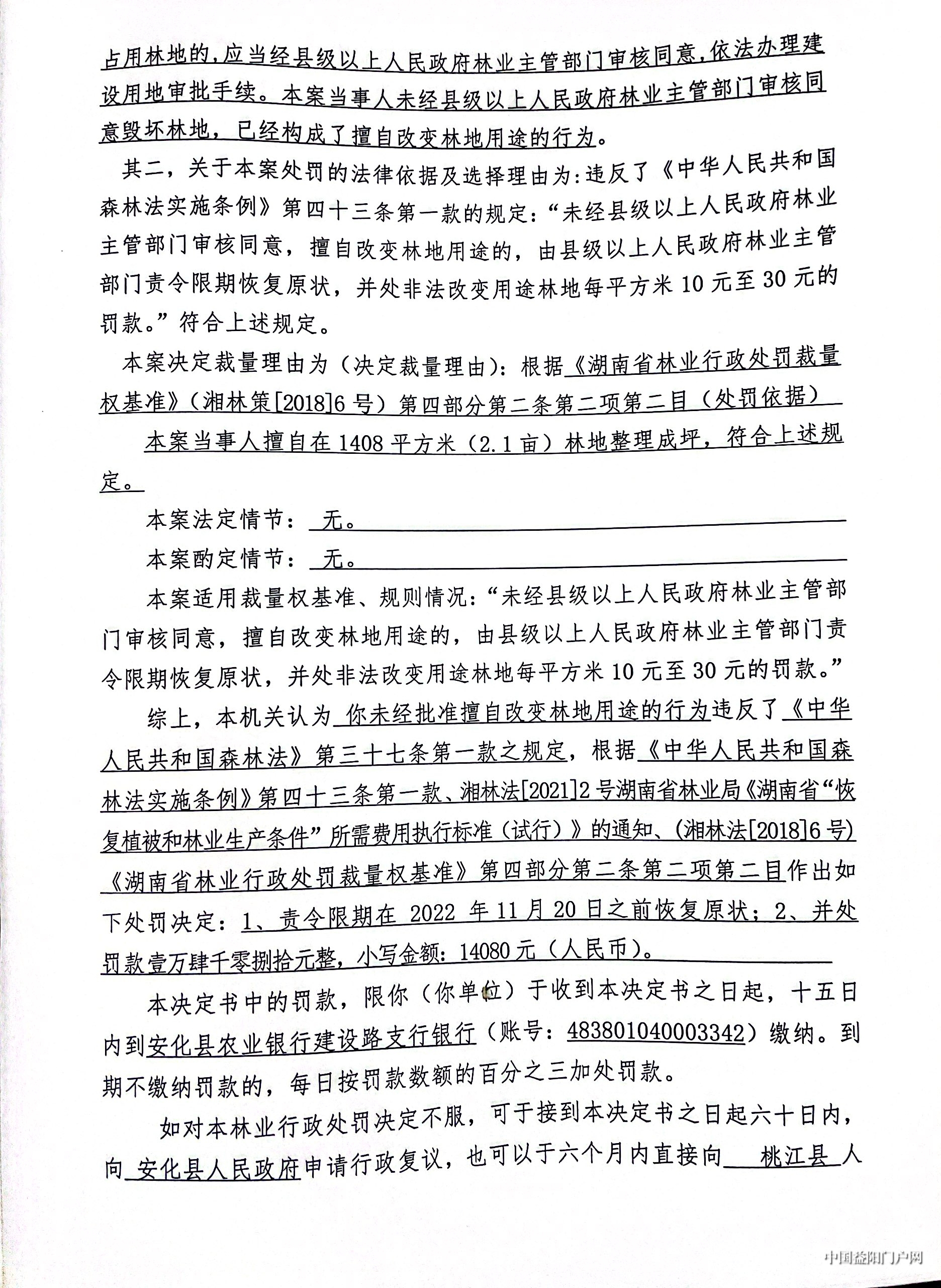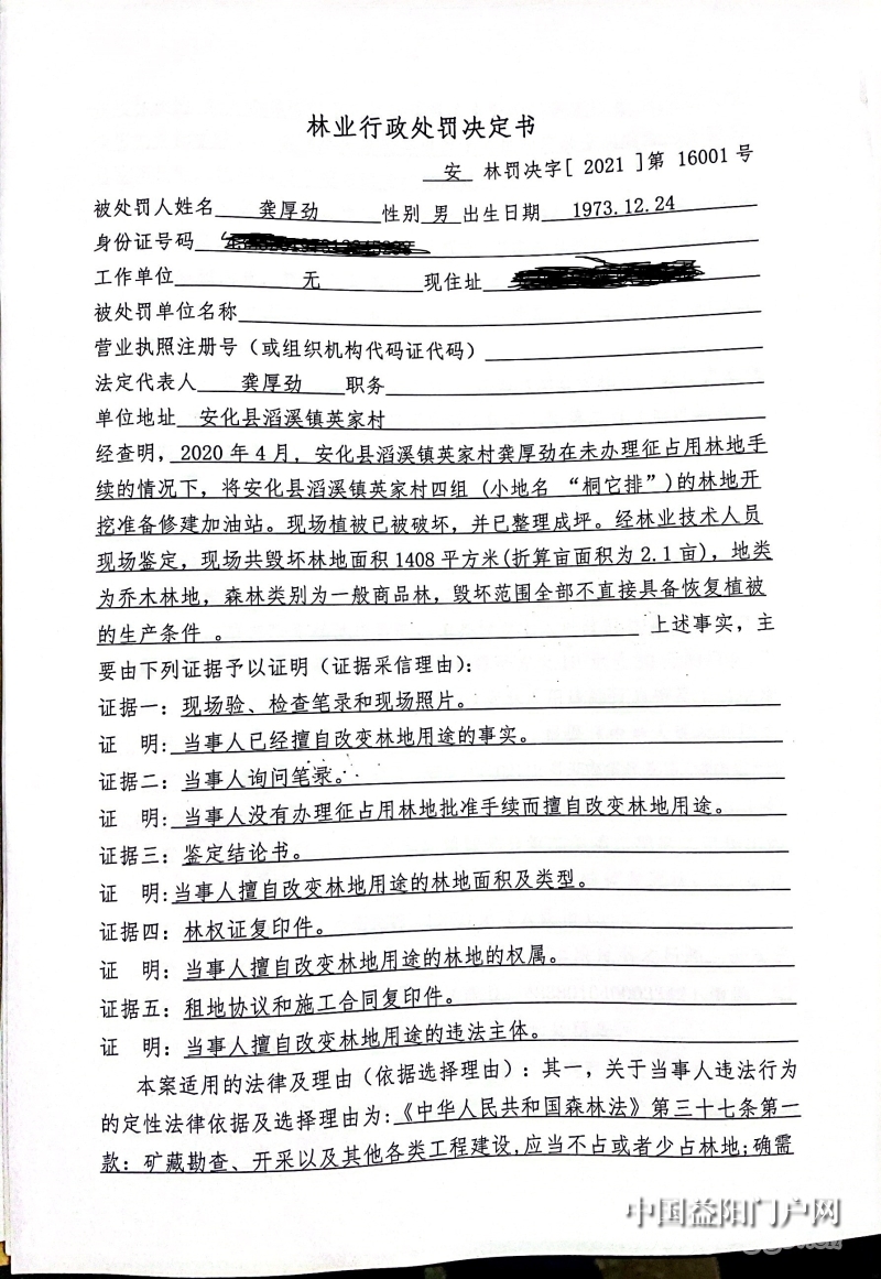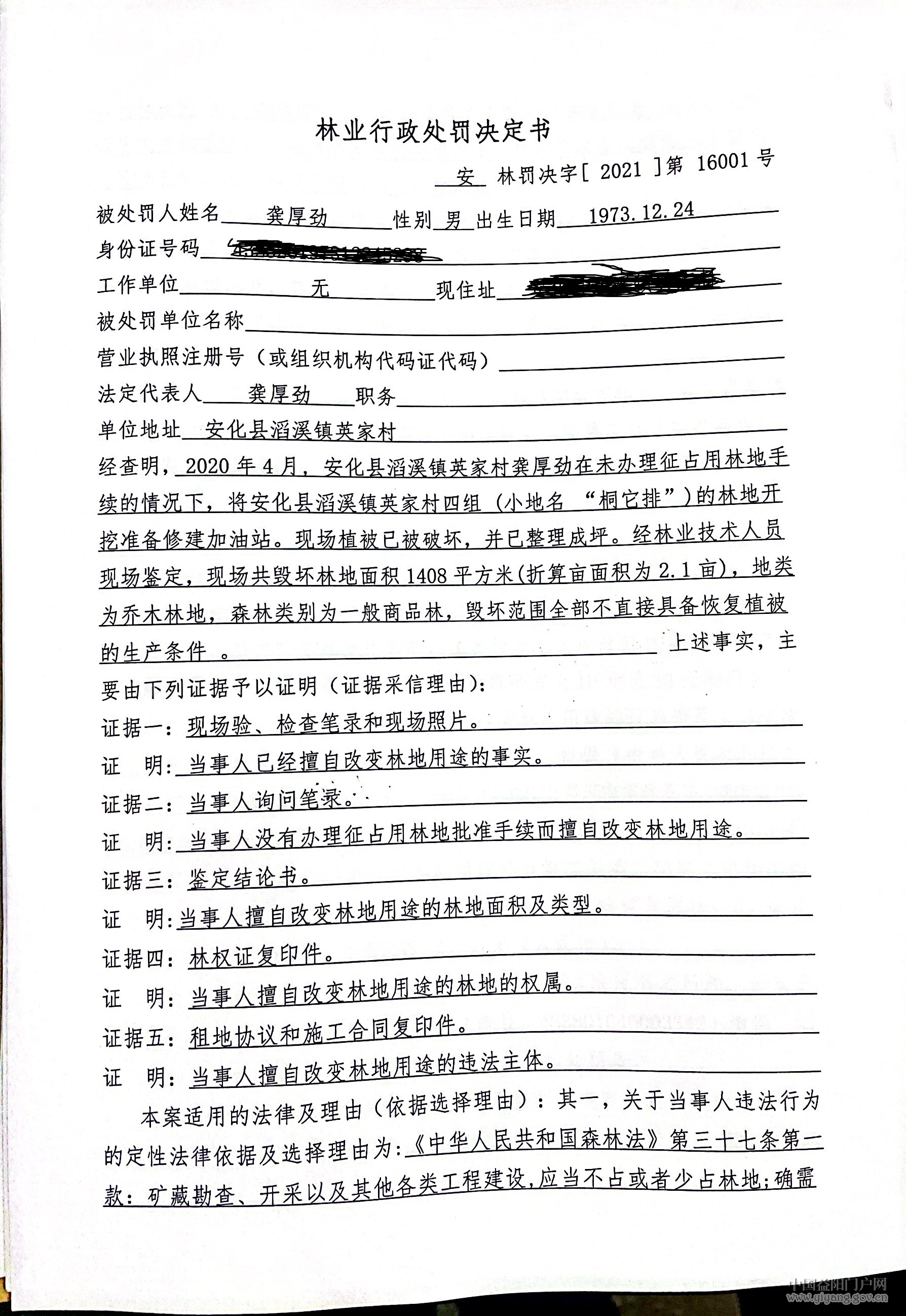 林业行政处罚决定书 安林罚决字[2021]第16001号