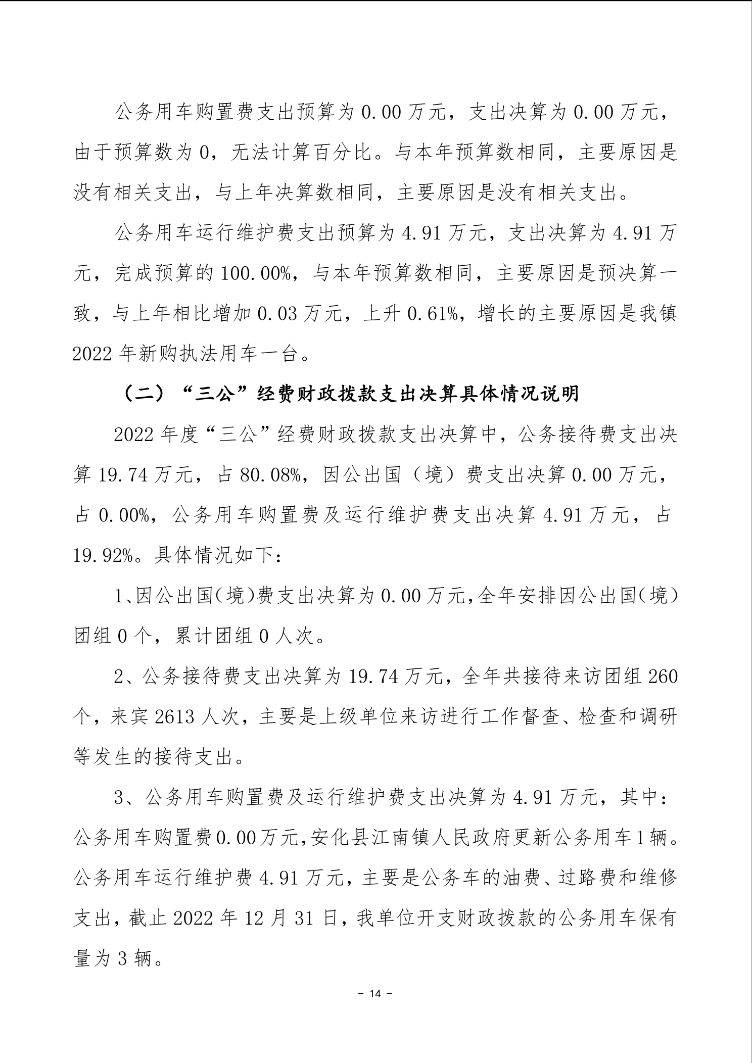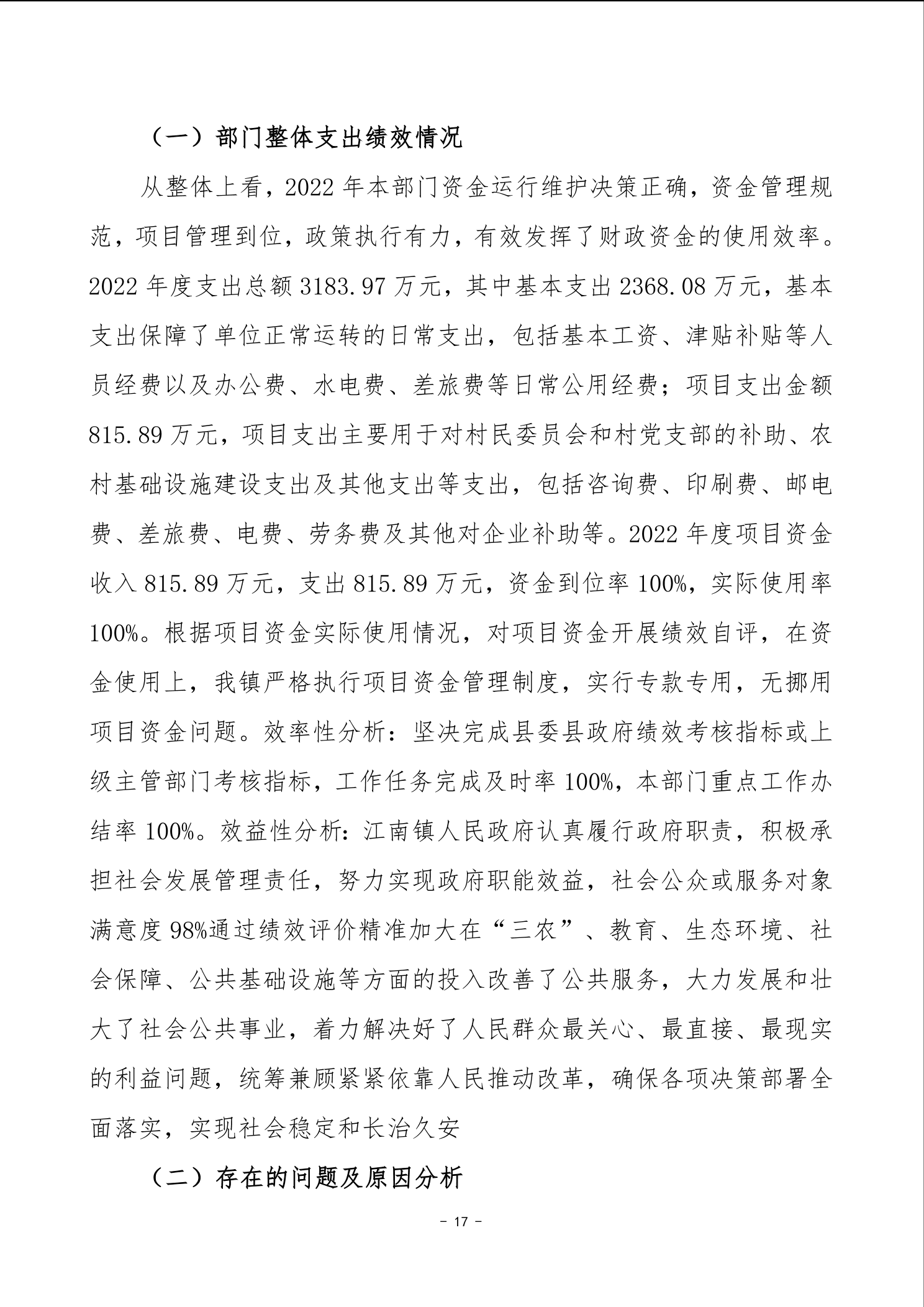 安化县江南镇人民政府2022年度部门整体支出绩效报告.doc