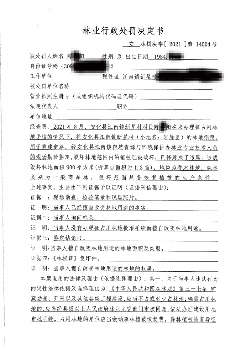 安林罚决字〔2021〕第14004号 林业行政处罚决定书