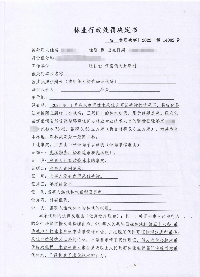 安林罚决字〔2022〕第14002号 林业行政处罚决定书