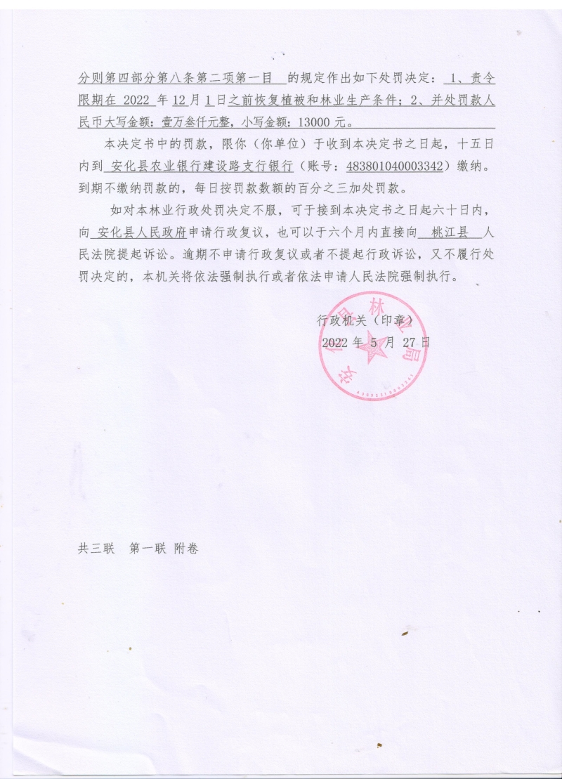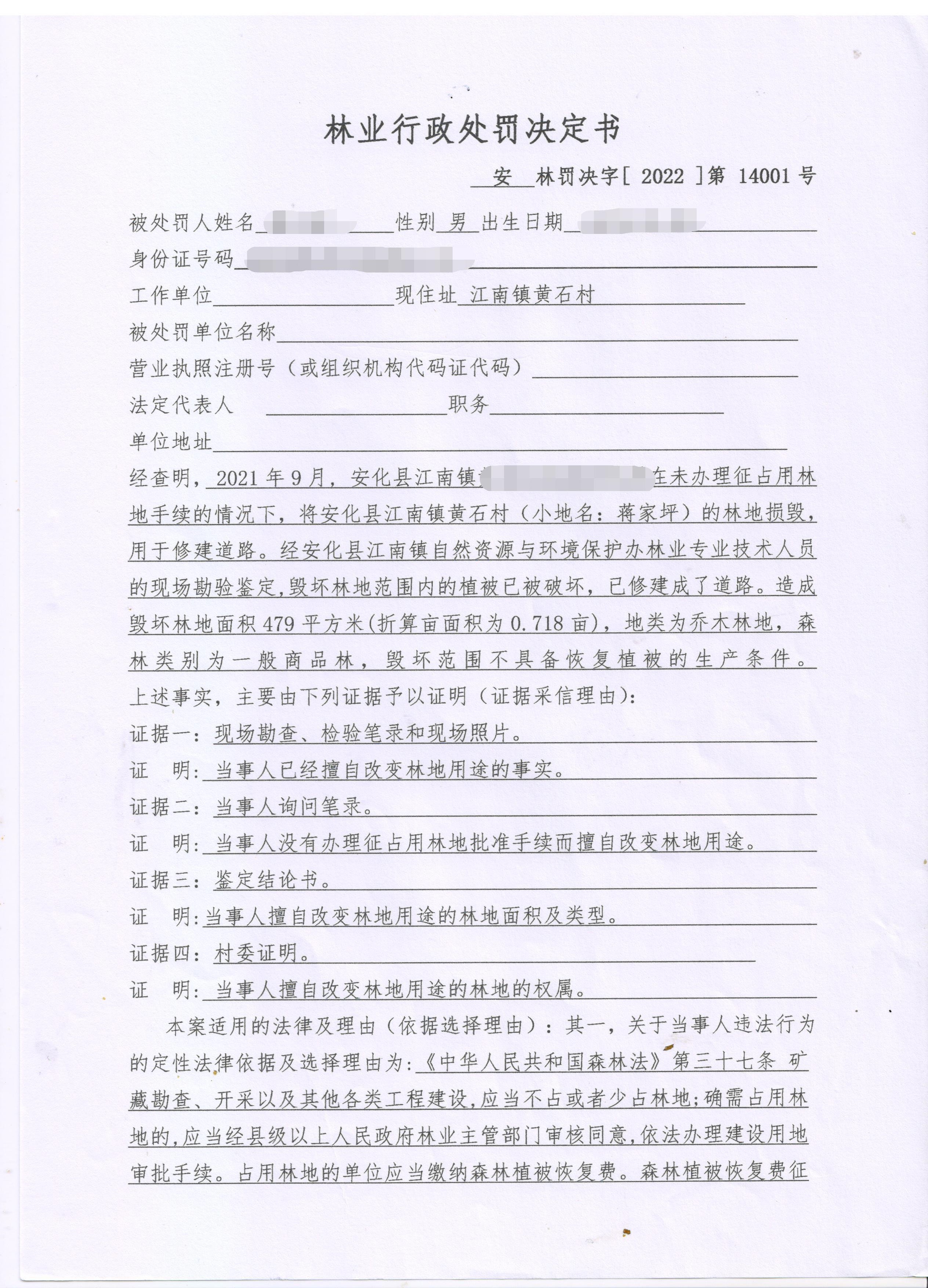 安林罚决字〔2022〕第14001号 林业行政处罚决定书
