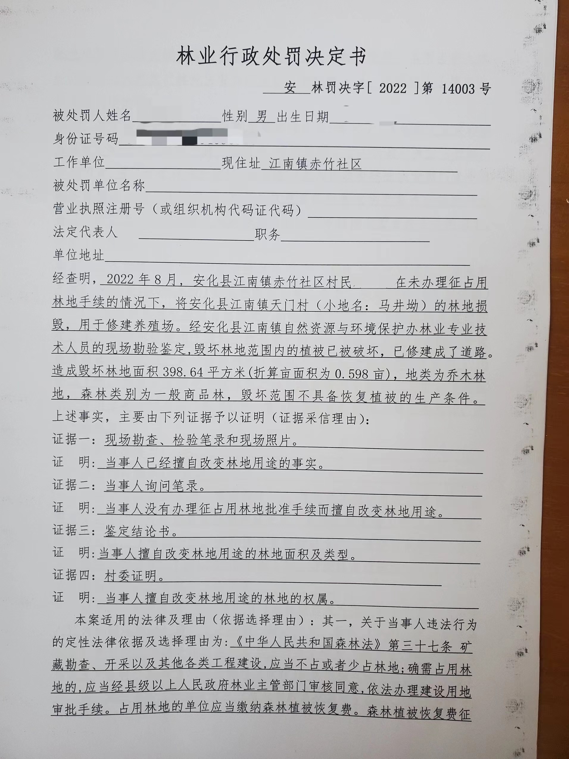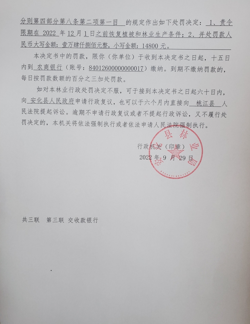 安林罚决字〔2022〕第14003号 林业行政处罚决定书