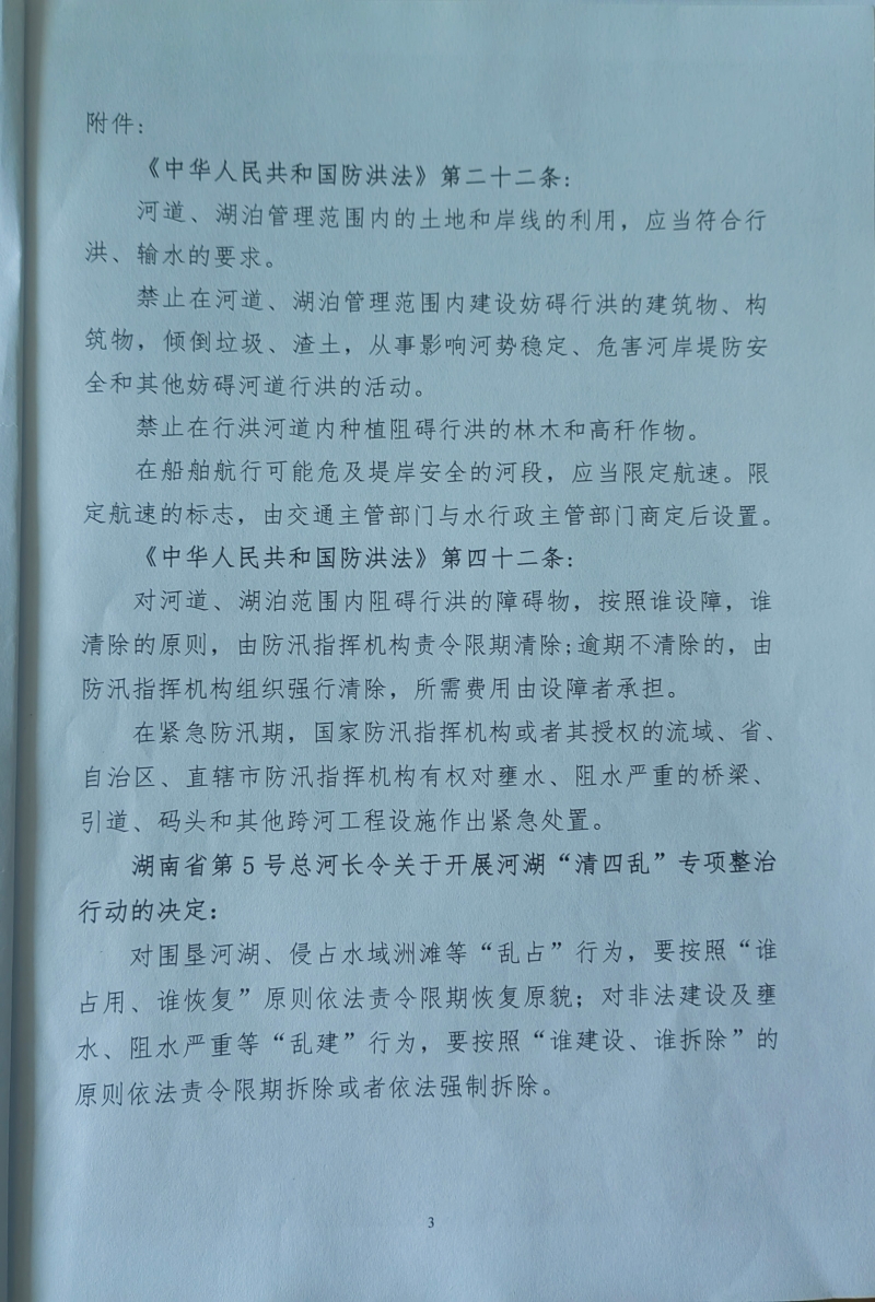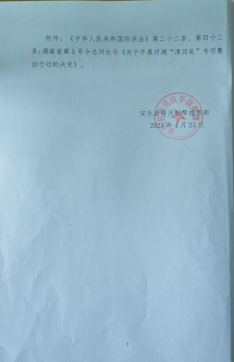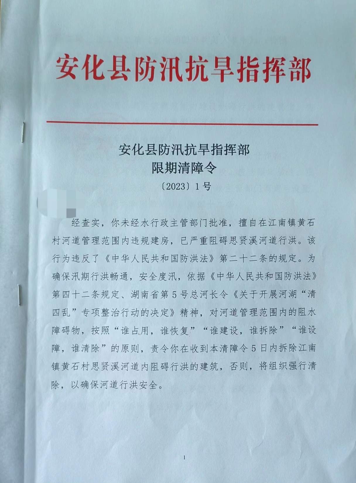 安化县防汛抗旱指挥部限期清障令〔2023〕1号