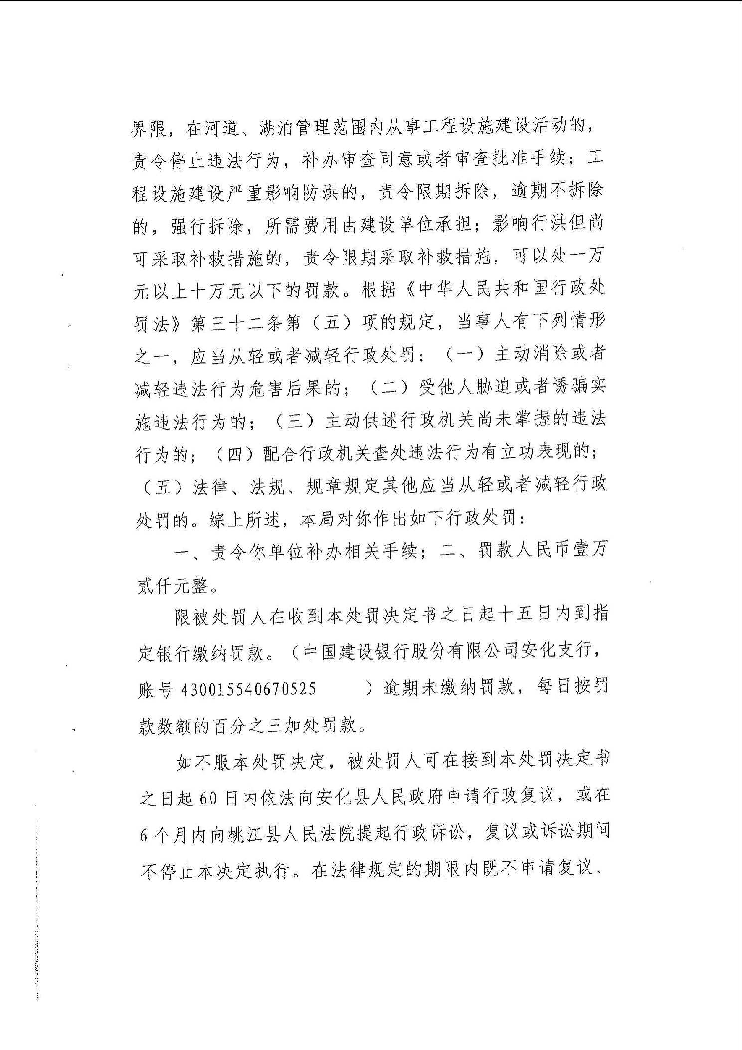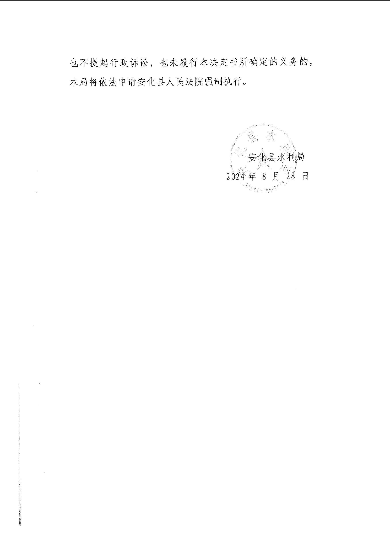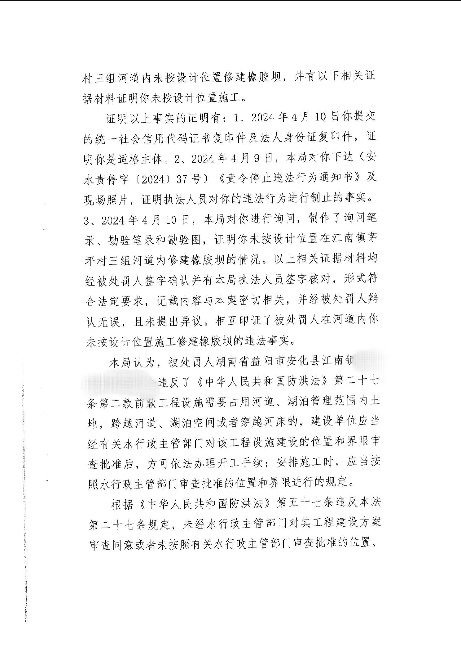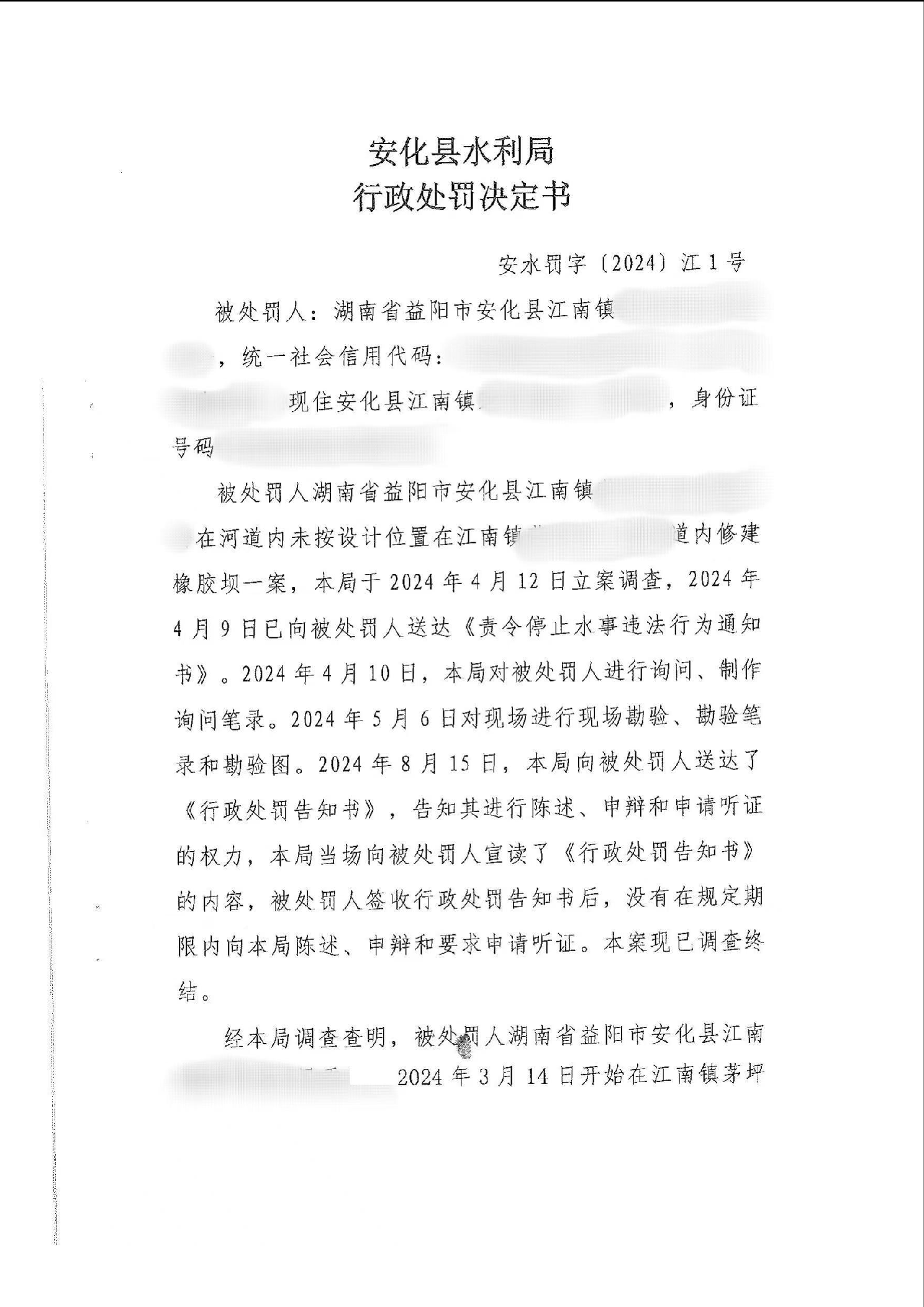 安水罚字〔2024〕江1号 安化县水利局行政处罚决定书