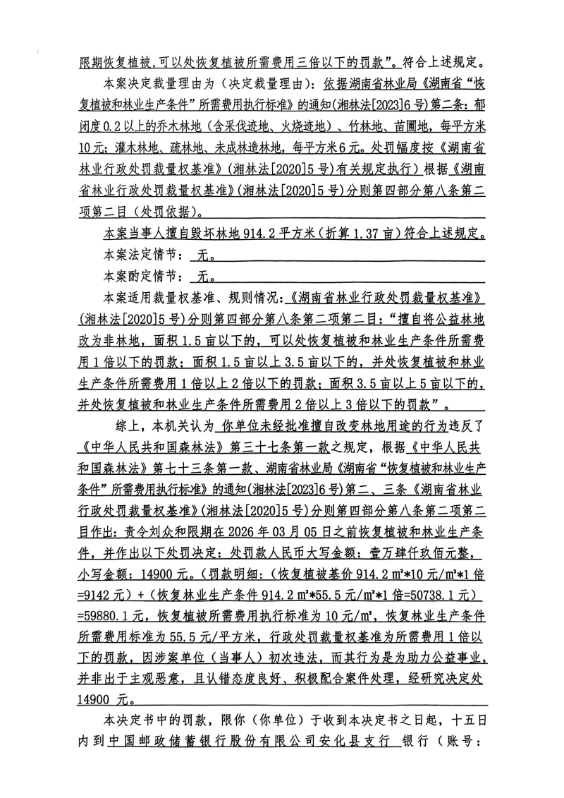 安林罚决字〔2025〕14002号林业行政处罚决定书