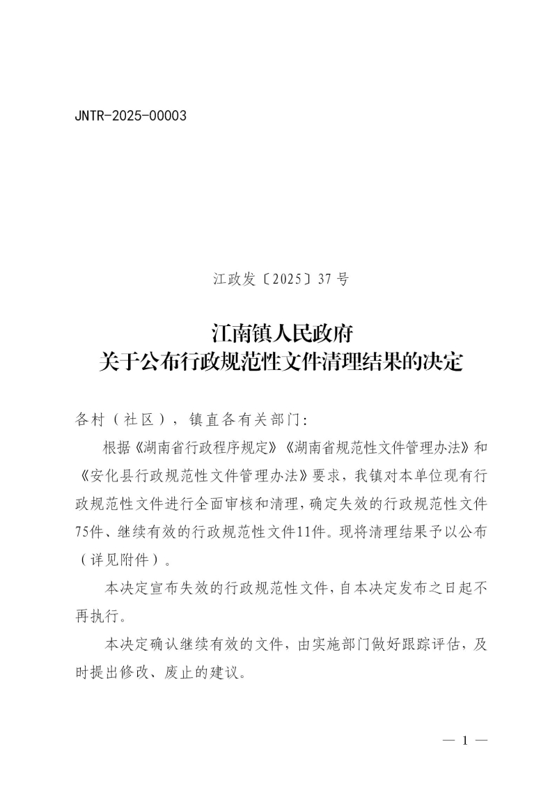 江政发〔2025〕37号关于公布行政规范性文件清理结果的决定
