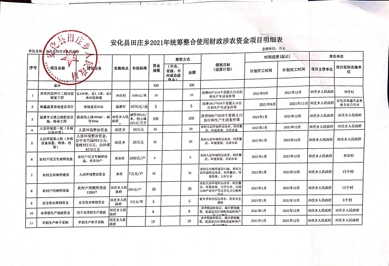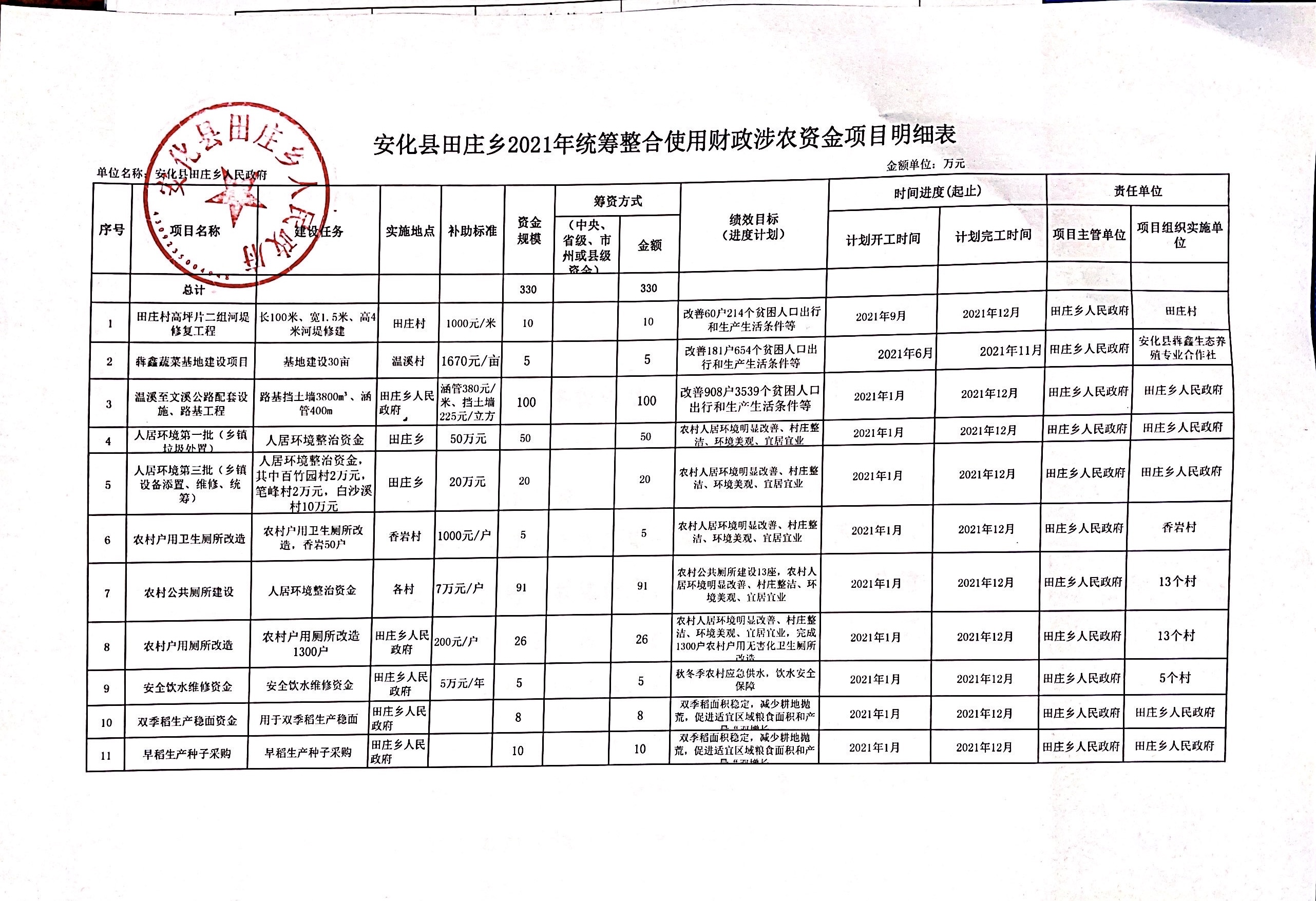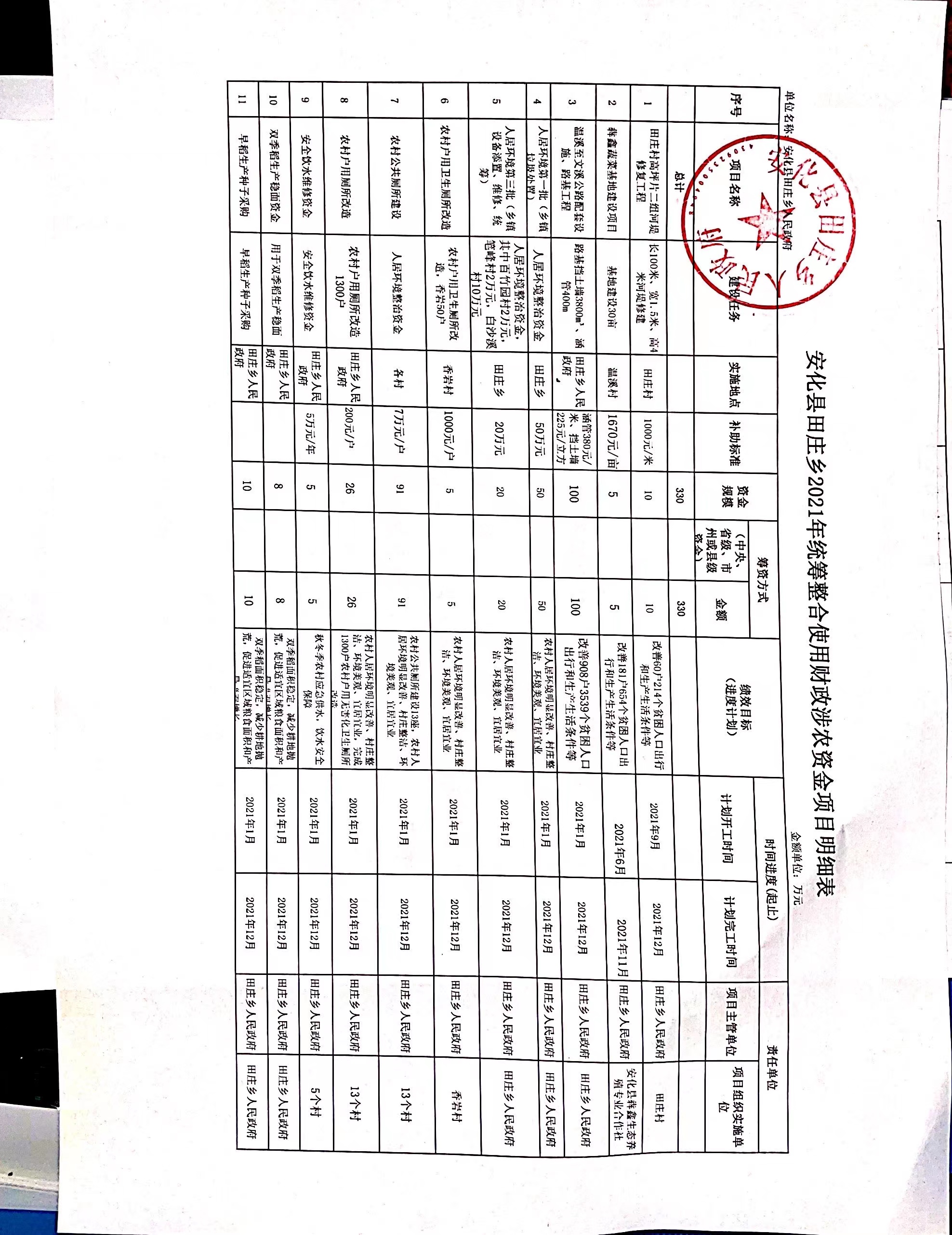安化县田庄乡2021年度统筹整合使用财政涉农资金项目明细表公示