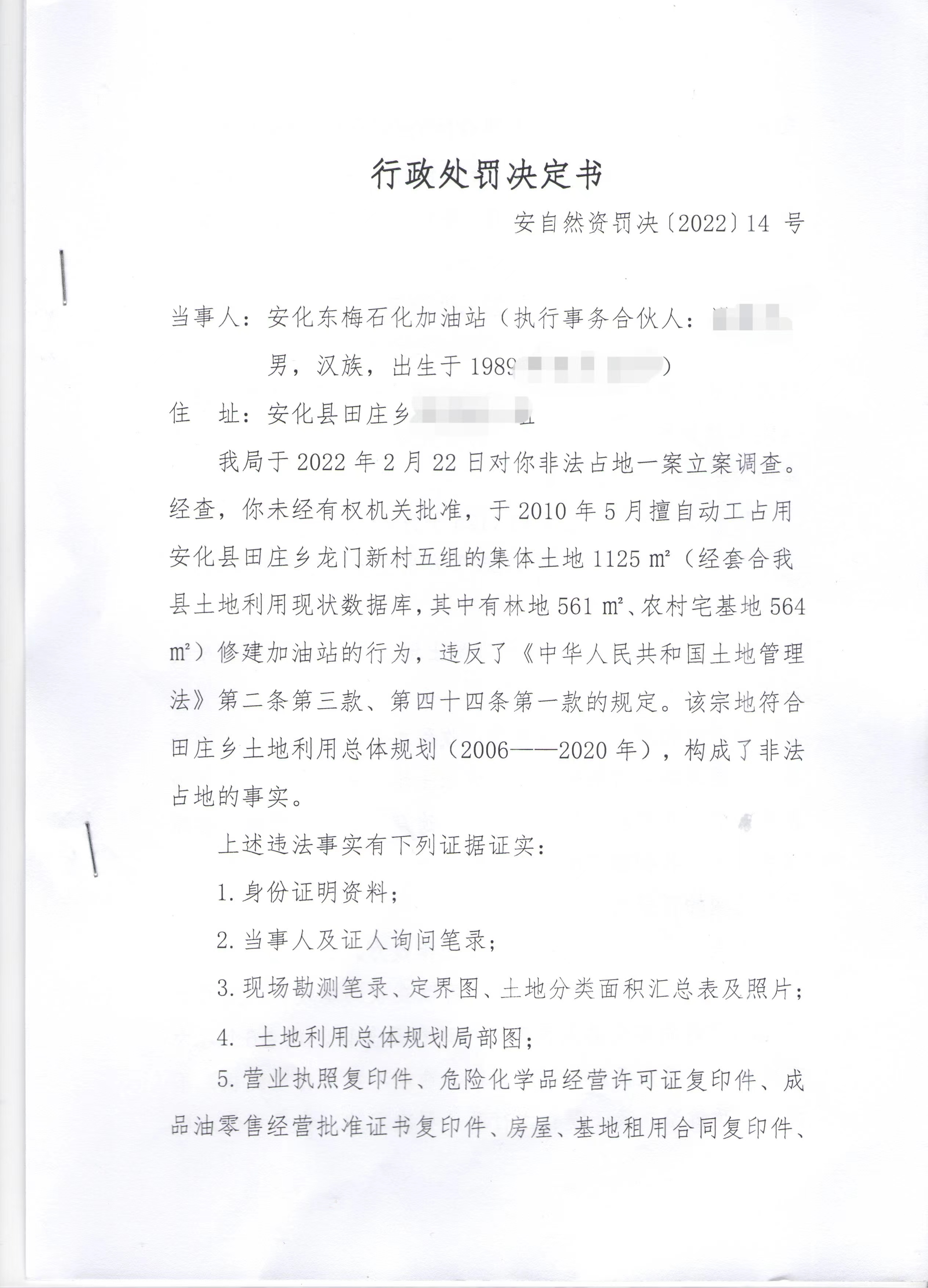 行政处罚决定书(安自然资罚决〔2022〕14号)
