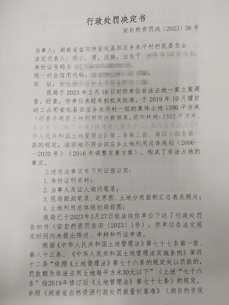 行政处罚决定书(安自然资罚决〔2023〕38号)