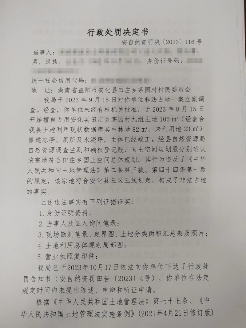 行政处罚决定书(安自然资罚决〔2023〕116号)