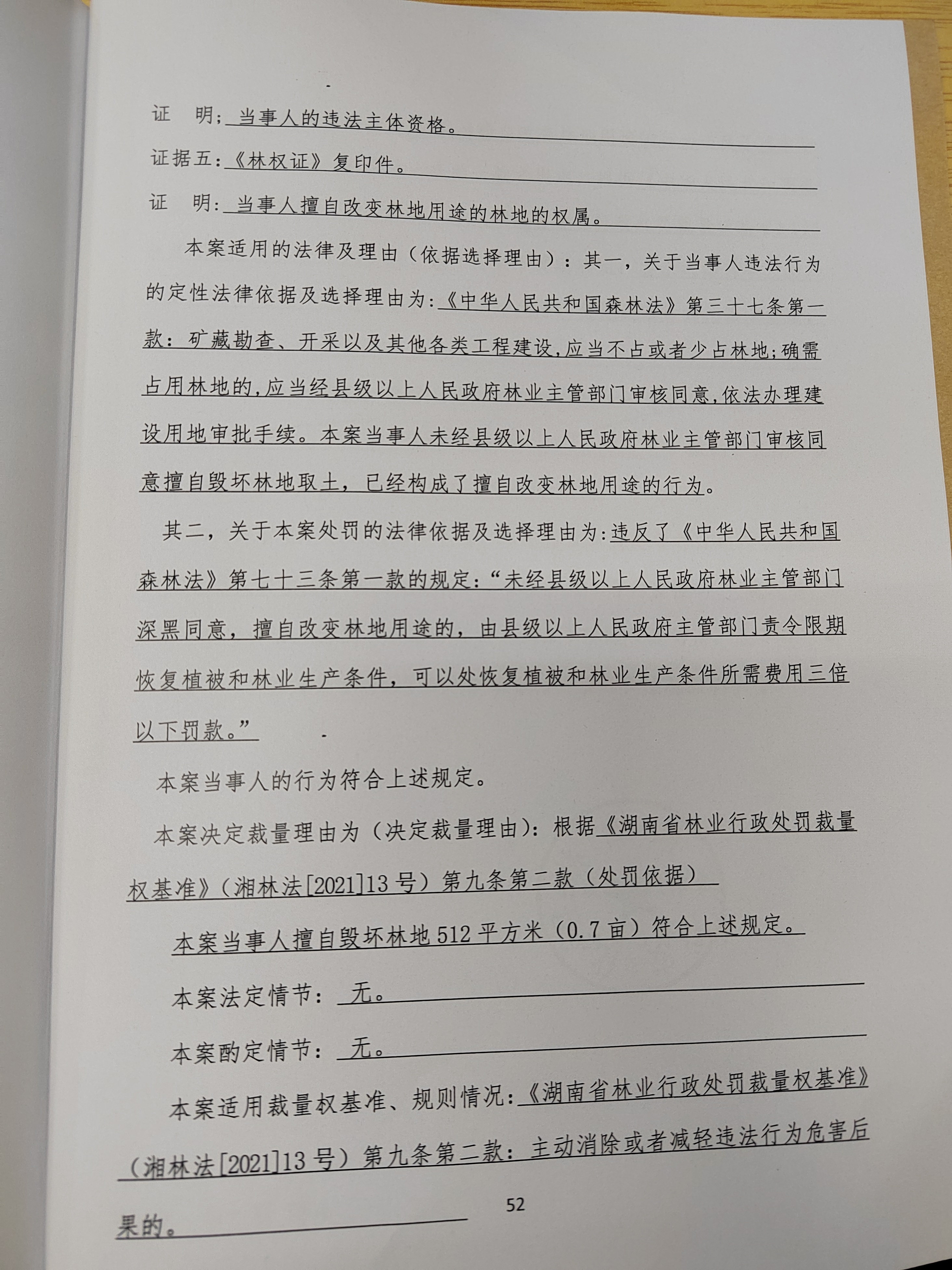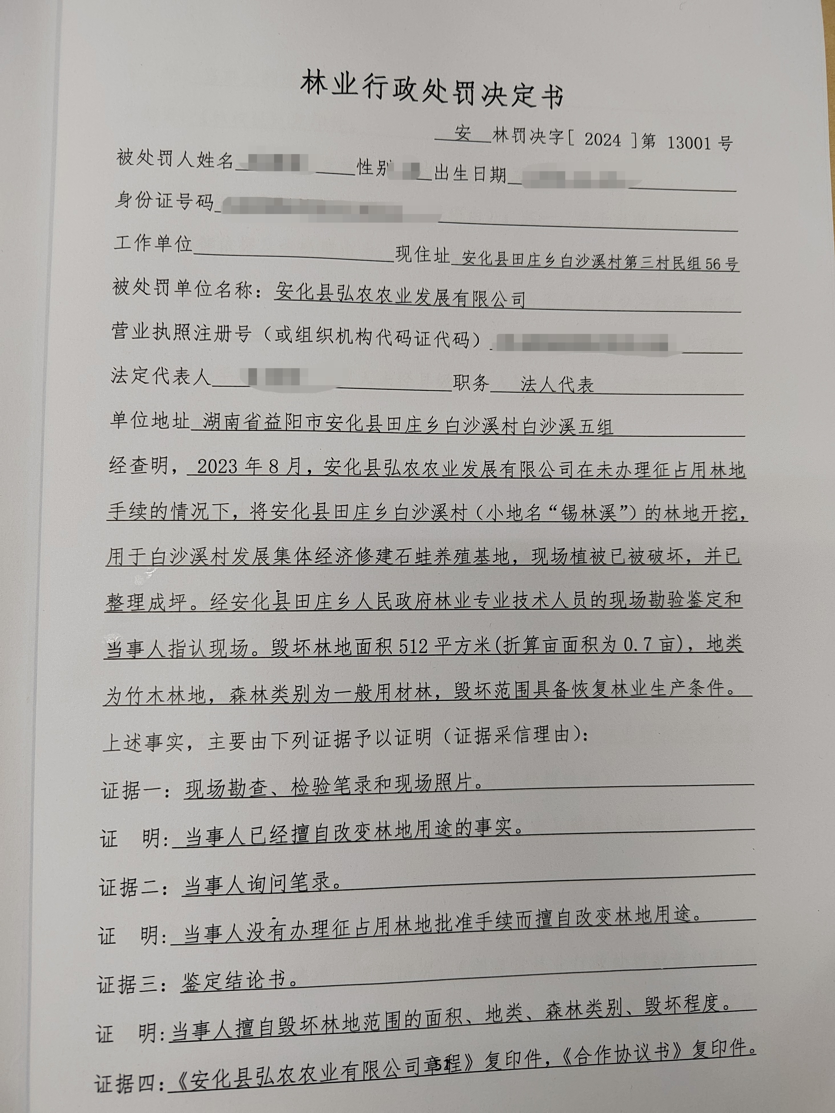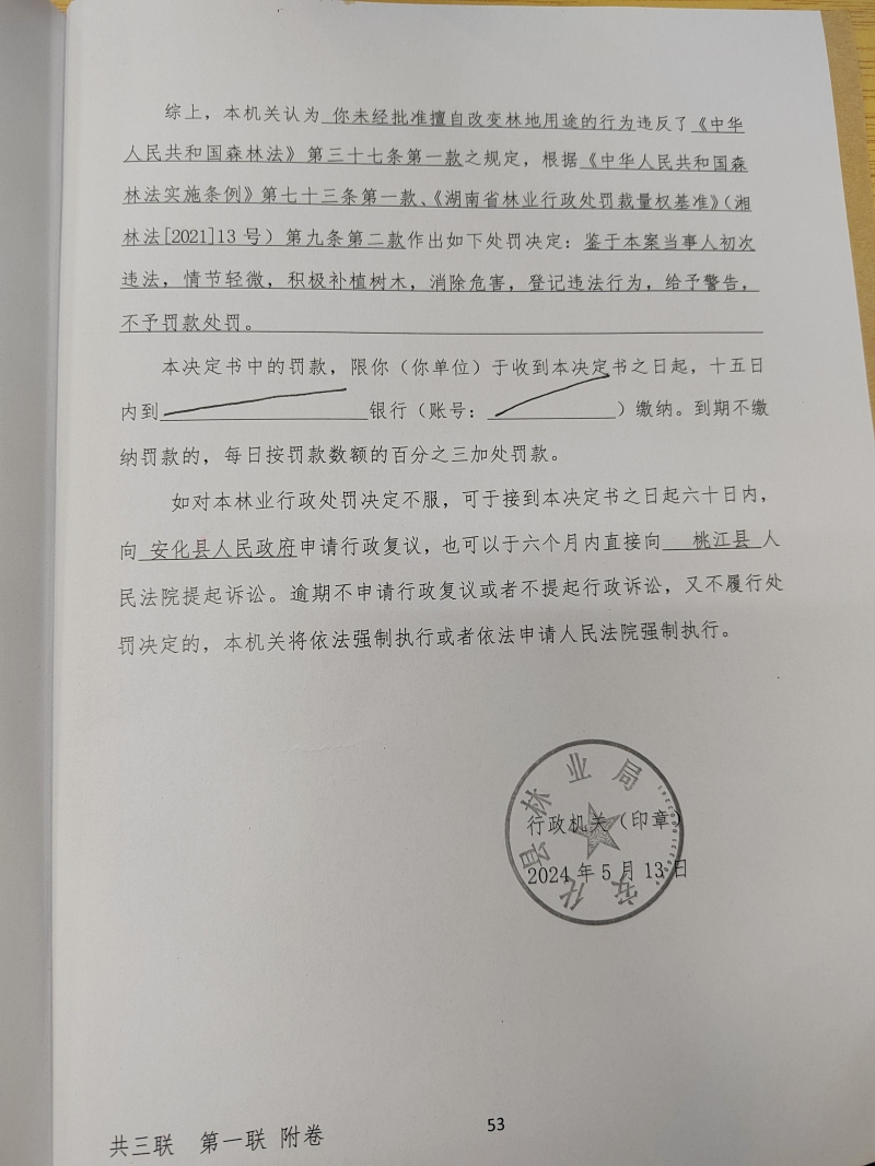 安化县林业局林业行政处罚决定书2