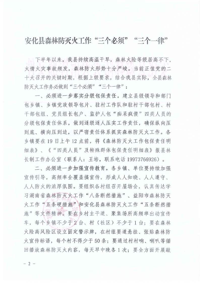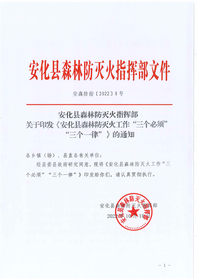 关于印发《安化县森林防灭火工作“三个必须”“三个一律”》的通知