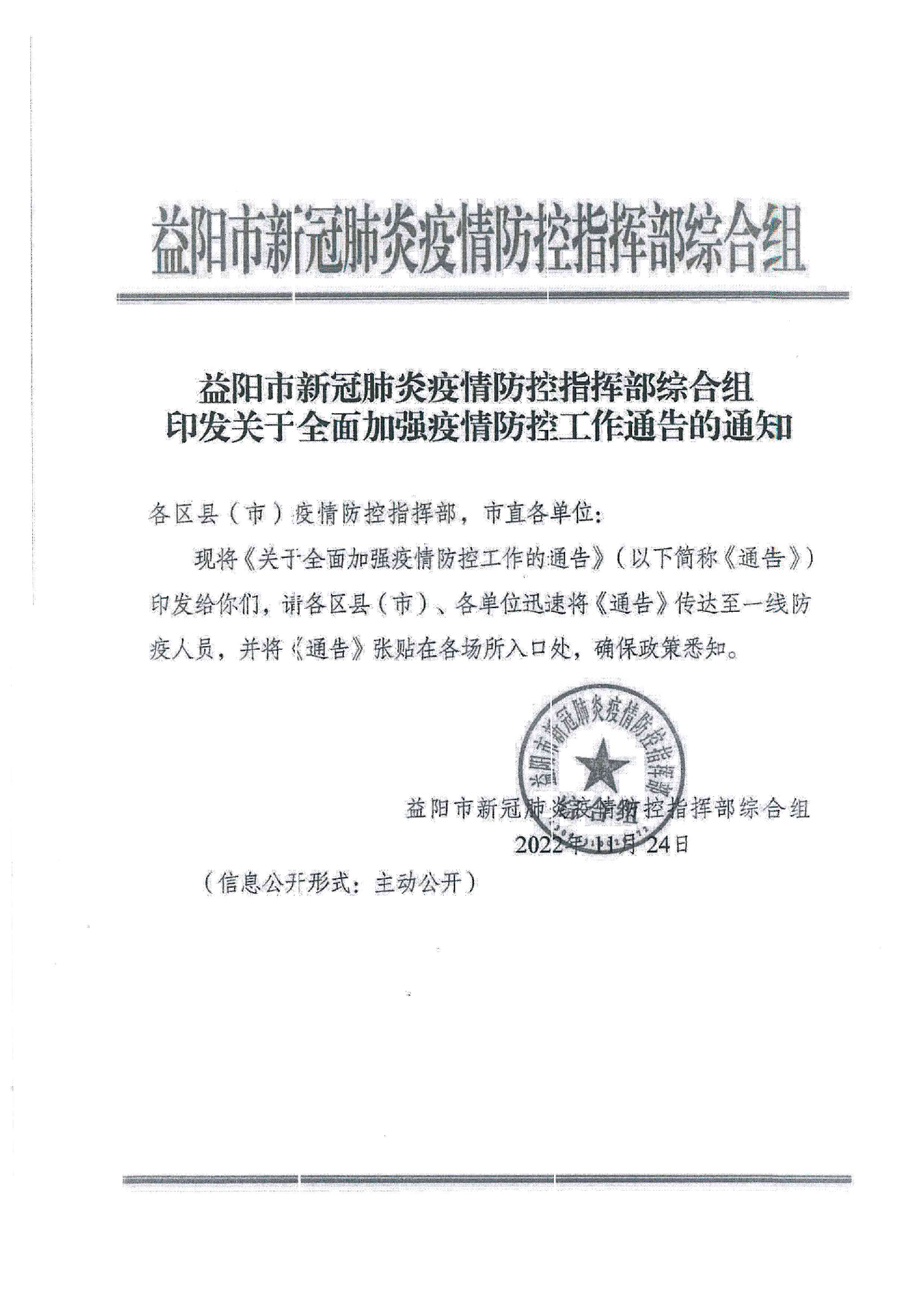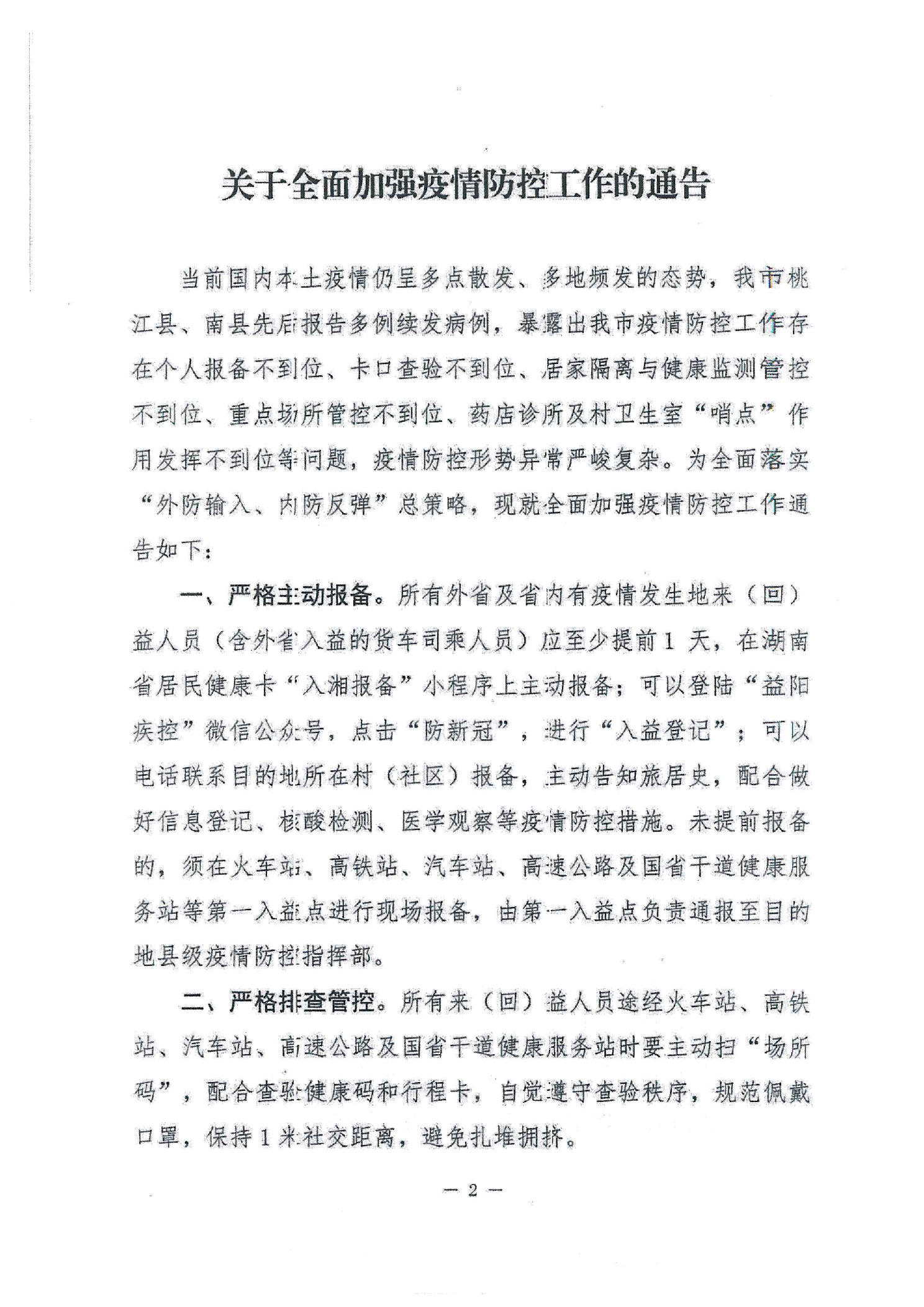 关于全面加强疫情防控工作通告的通知