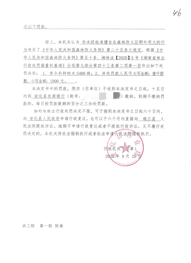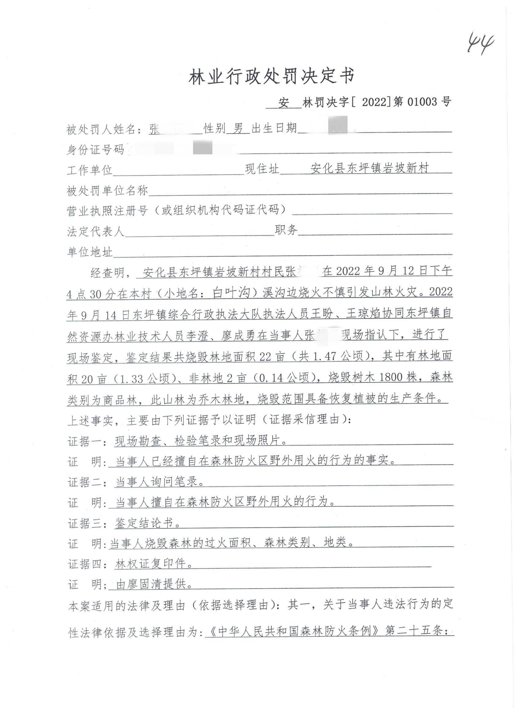 林业行政处罚决定书 安林罚决字[2022]第01003号