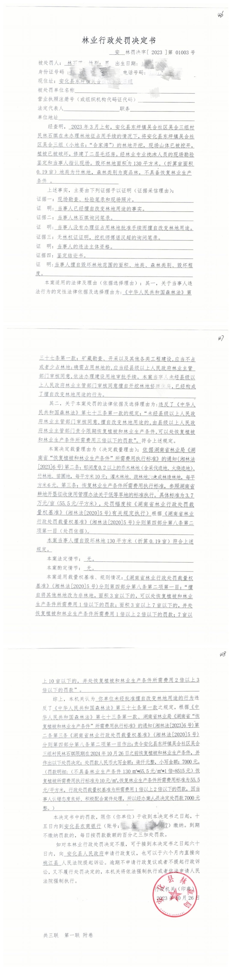 林业行政处罚决定书(安林罚决字[2023]第01003号)