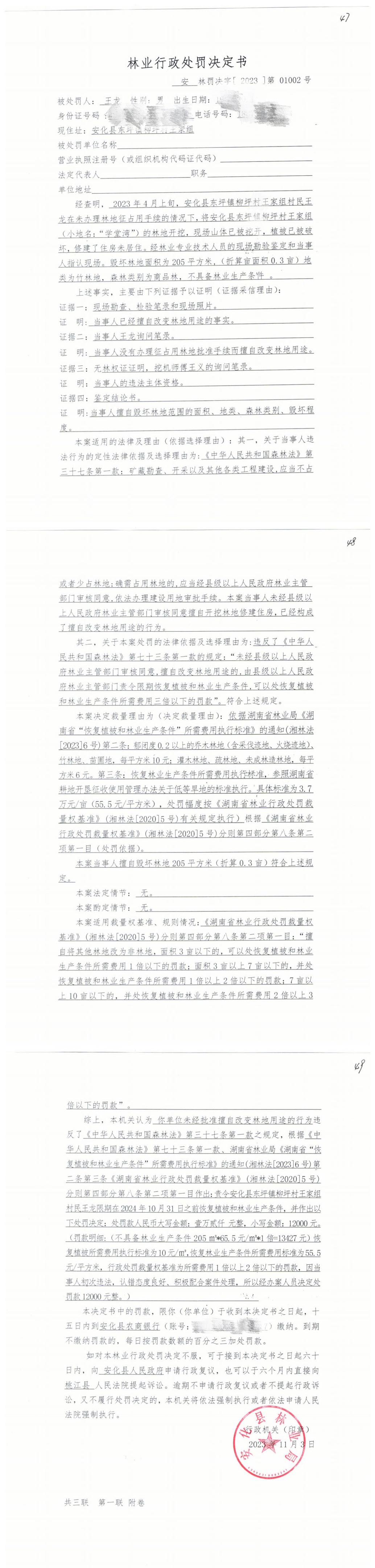 林业行政处罚决定书 (安林罚决字[2023]第01002号)