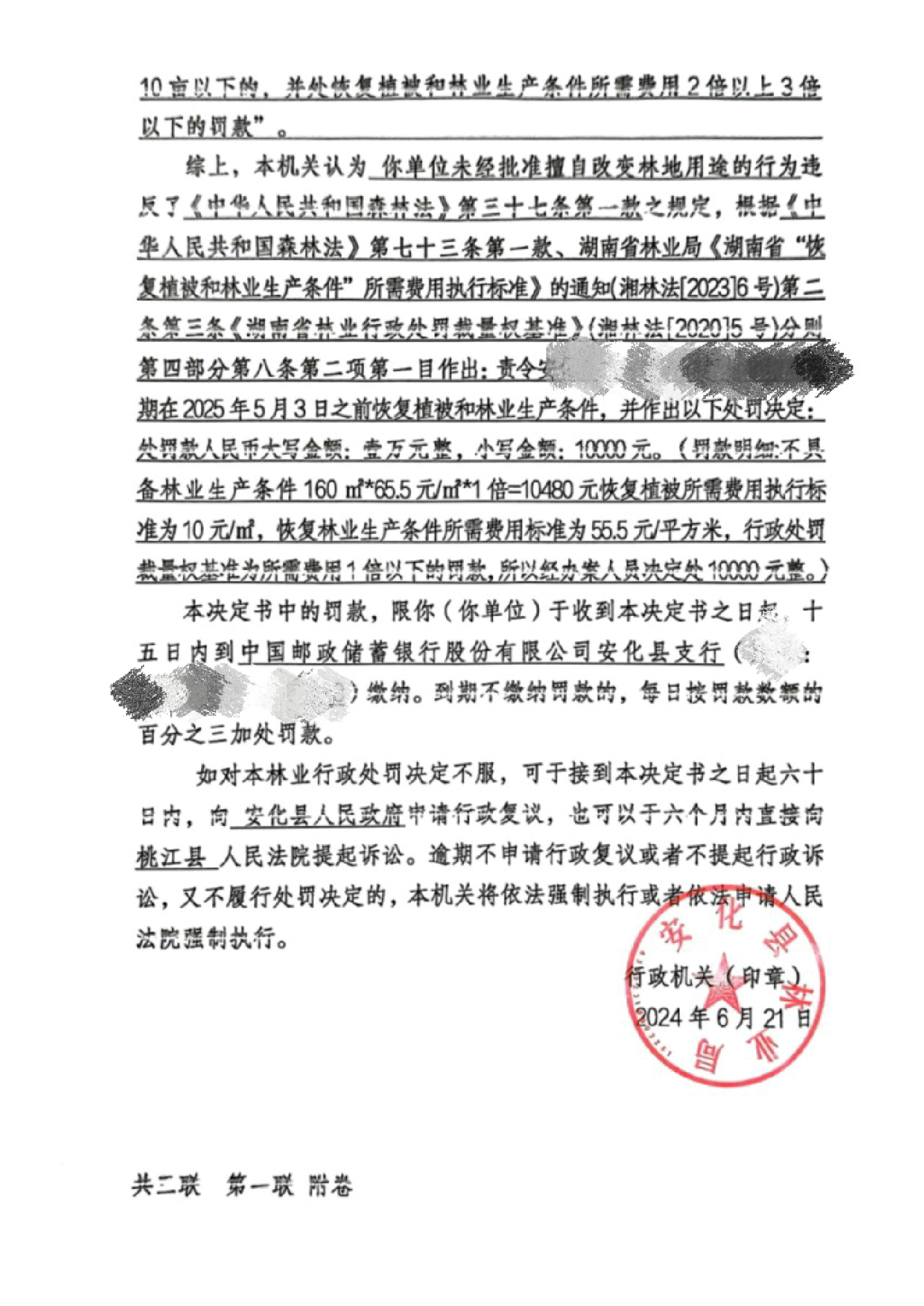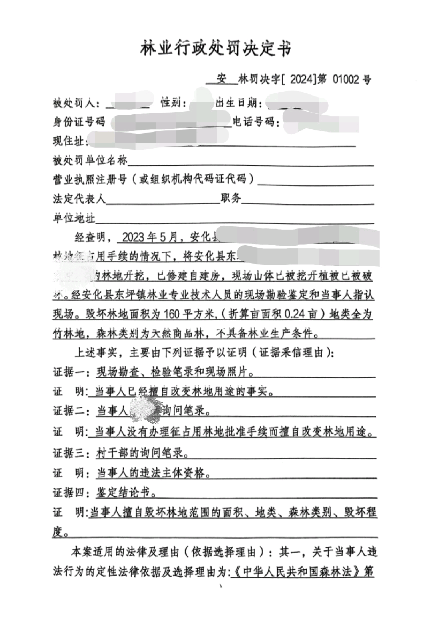 林业行政处罚决定书(安林罚决字【2024】第01002号)