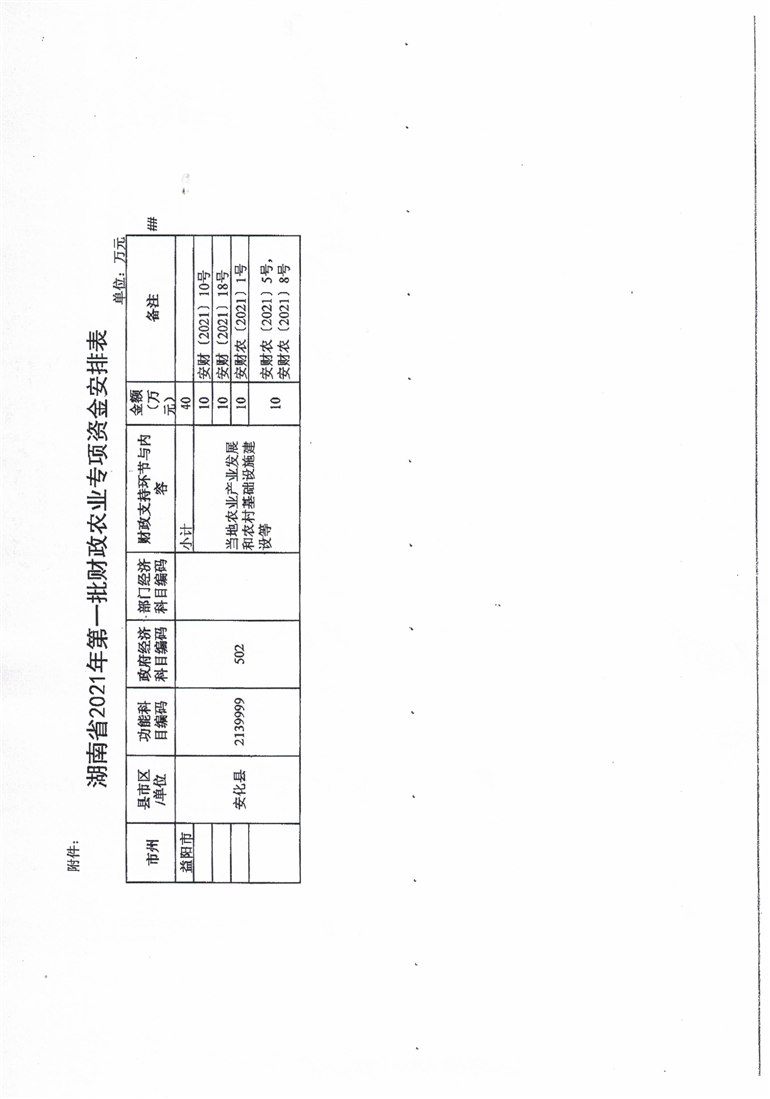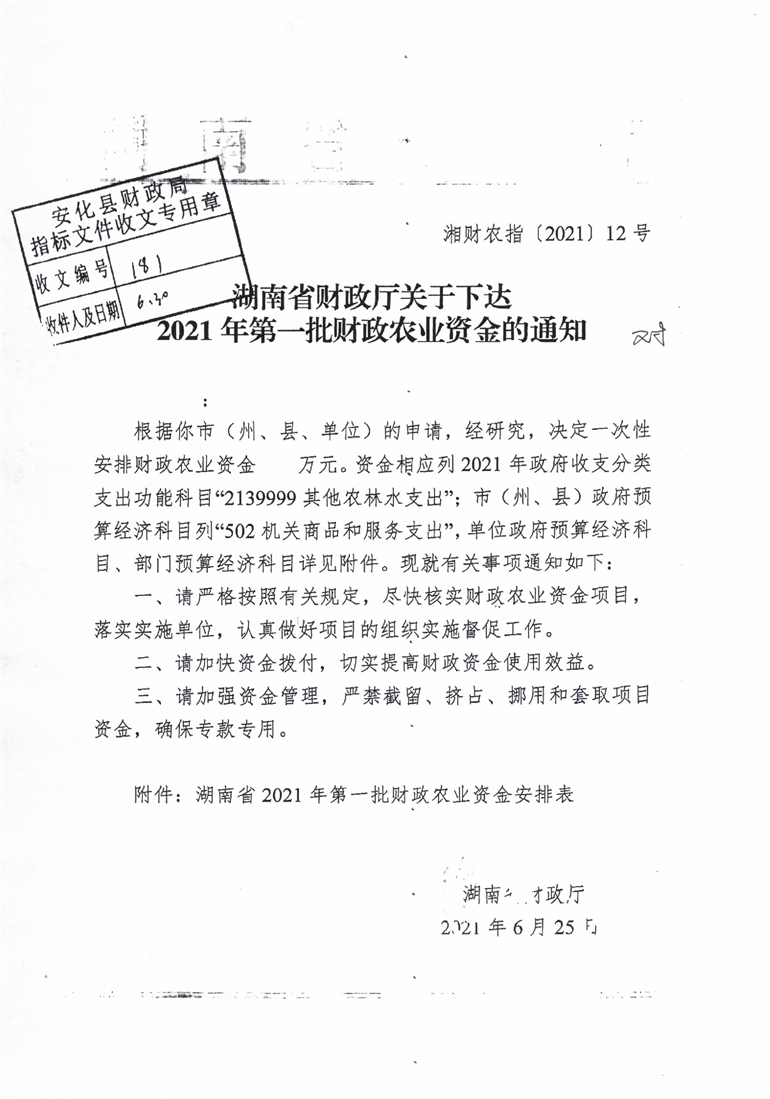 湖南省财政厅关于下过2021年第一批财政农业资金的通知