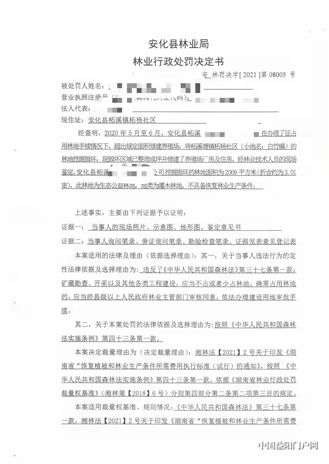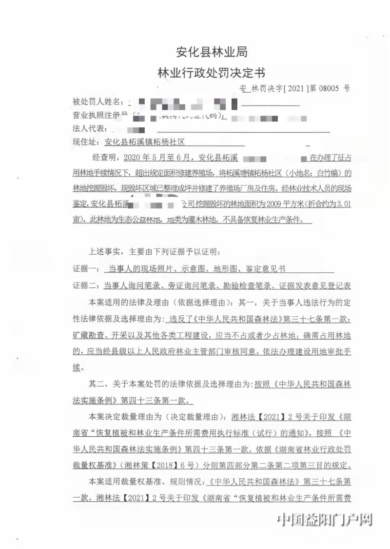 林业行政处罚决定书 安林罚决字[2021]第08005号