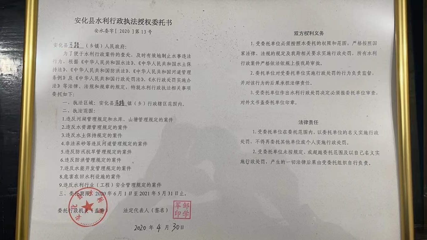 水利行政执法授权委托书(安水委字[2020]第13号)
