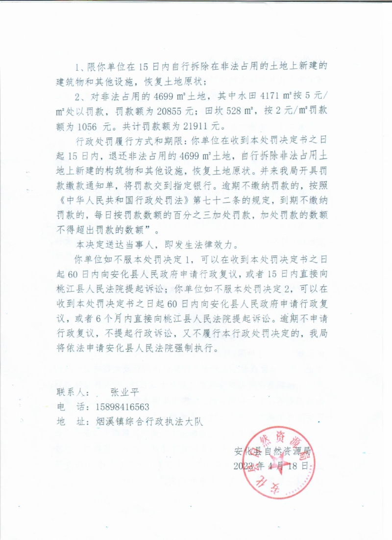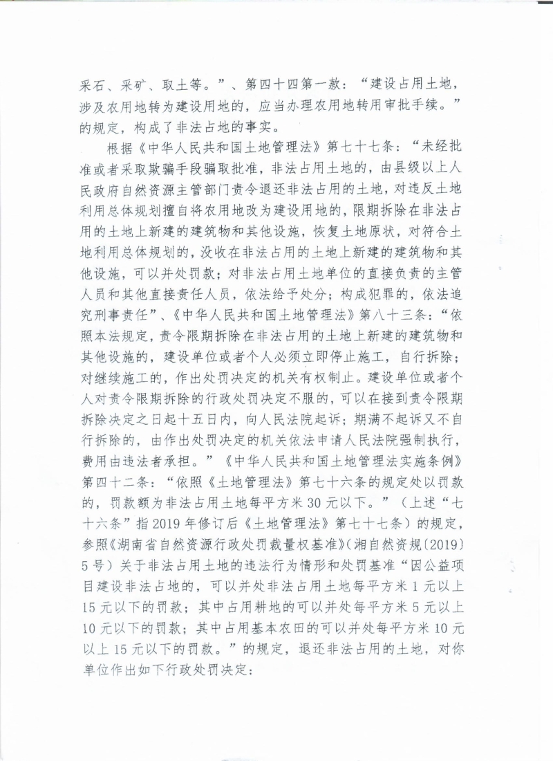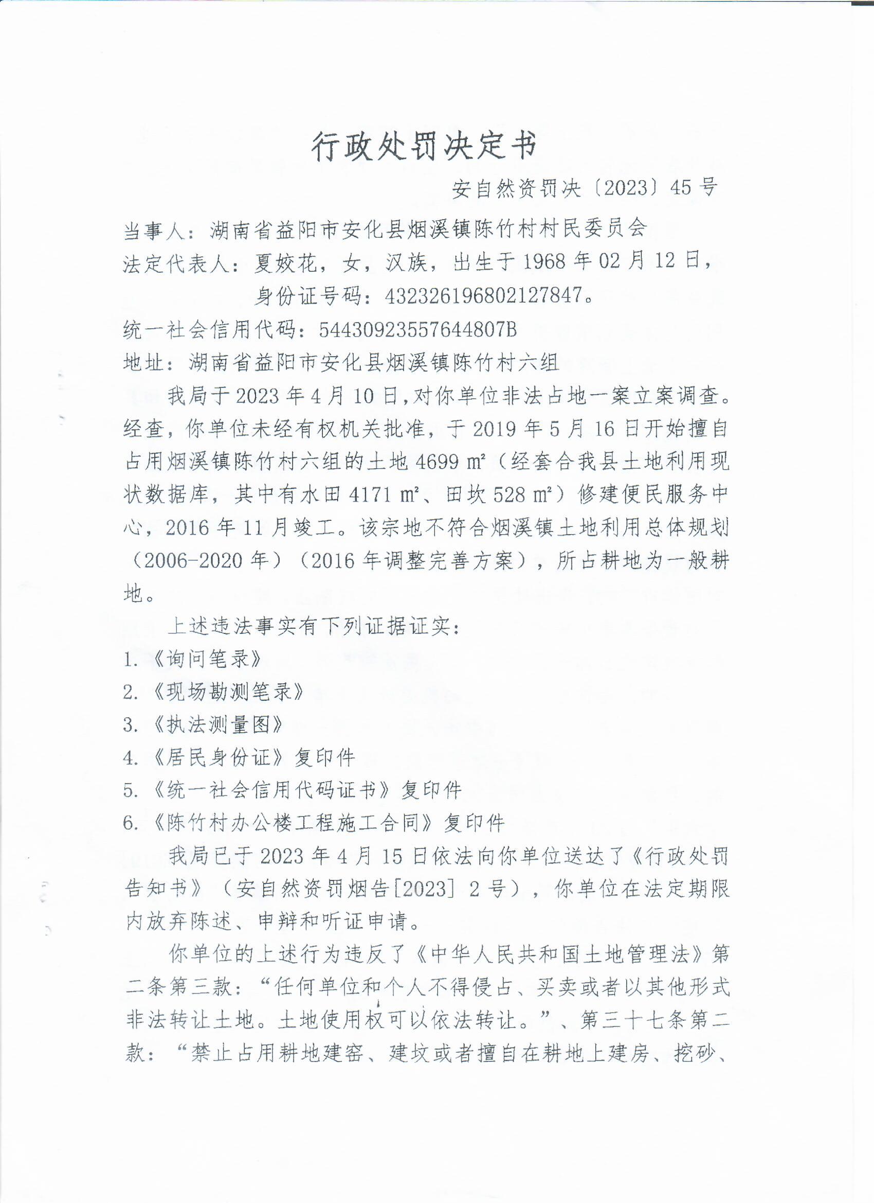 关于烟溪镇陈竹村村委违法占地修建便民服务中心的行政处罚决定书