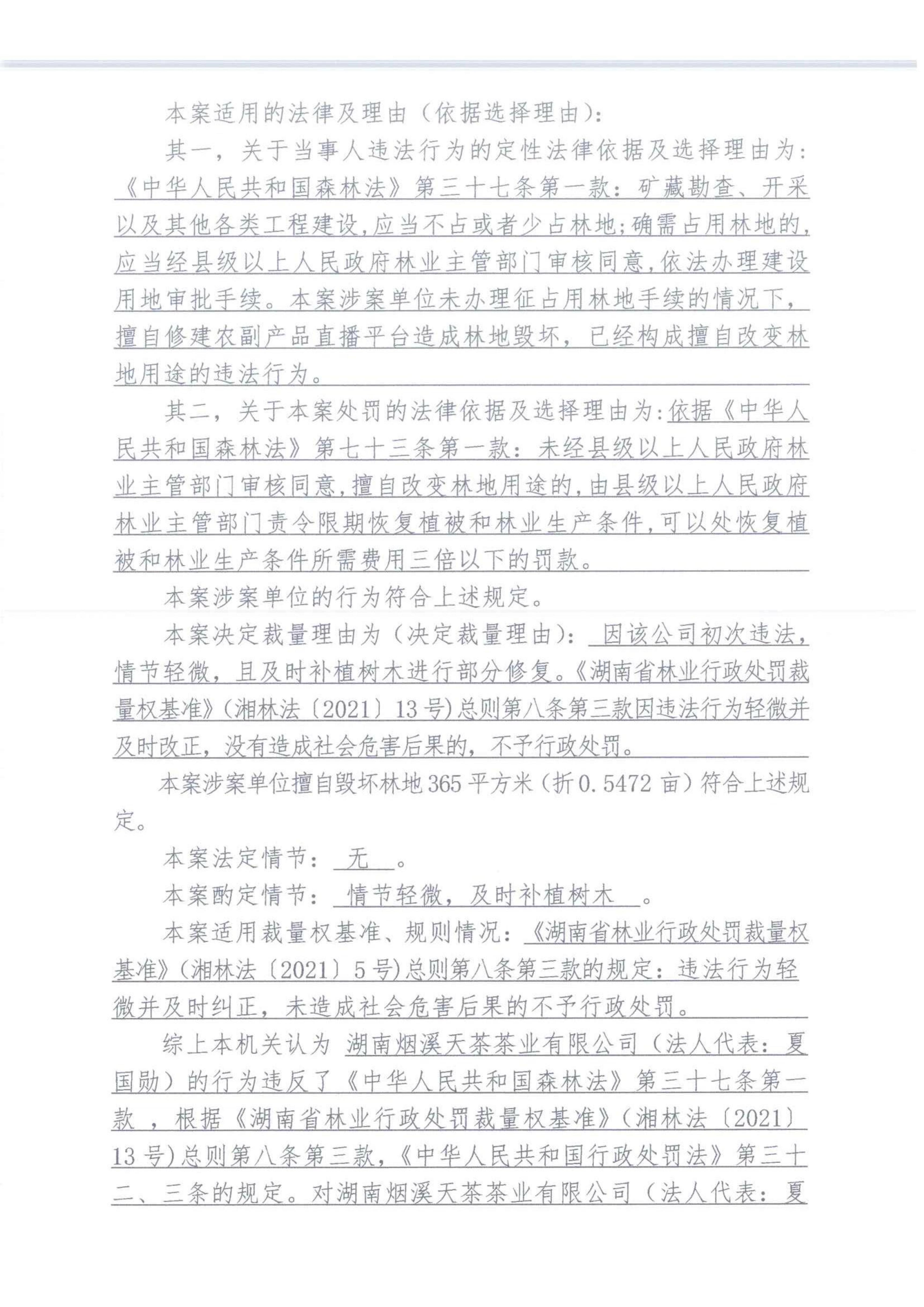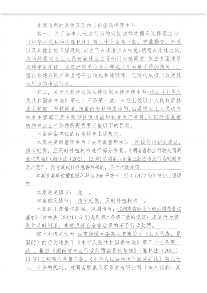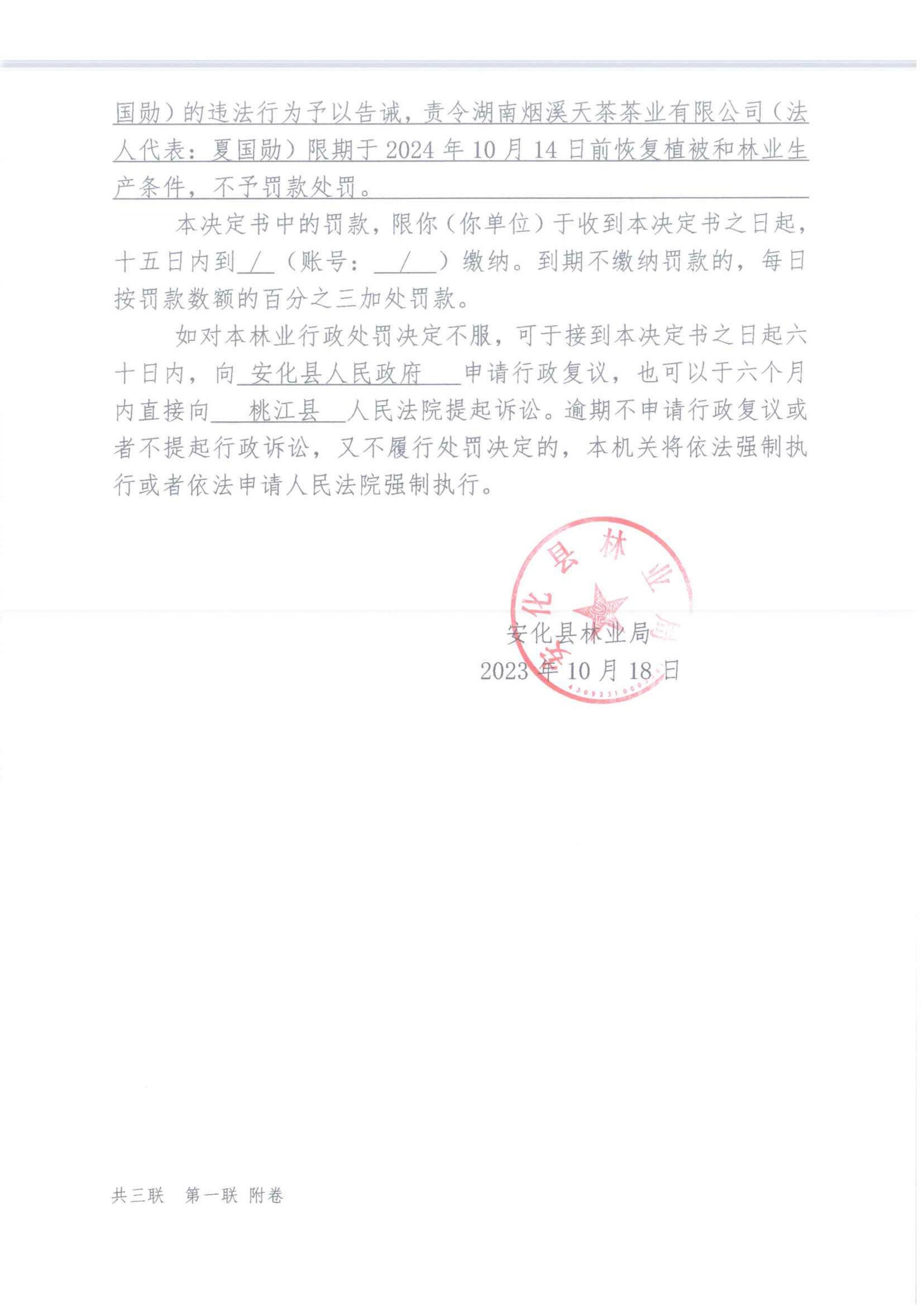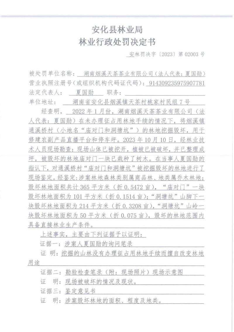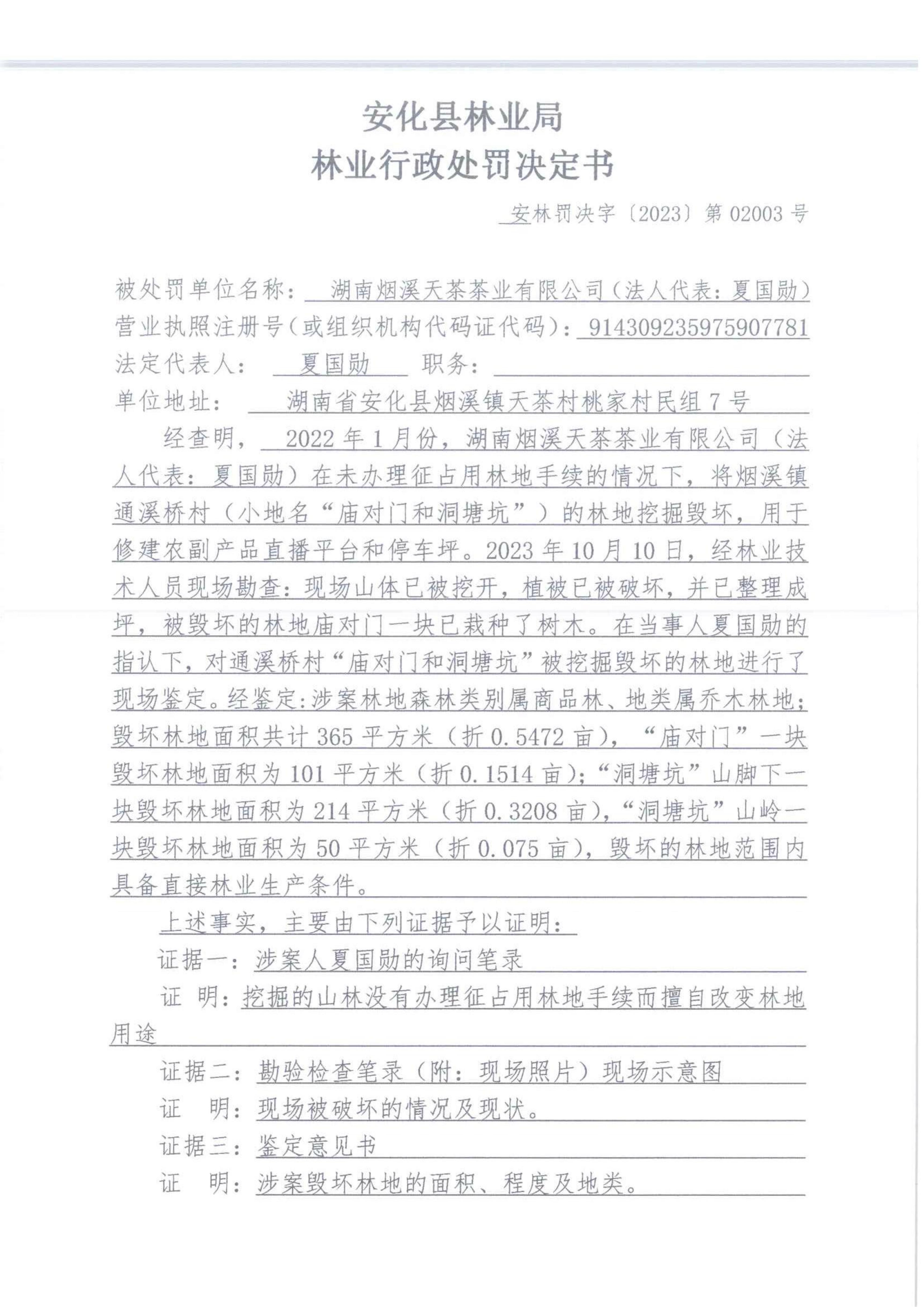 安化县林业局林业行政处罚决定书 安林罚决字[2023]第02003号