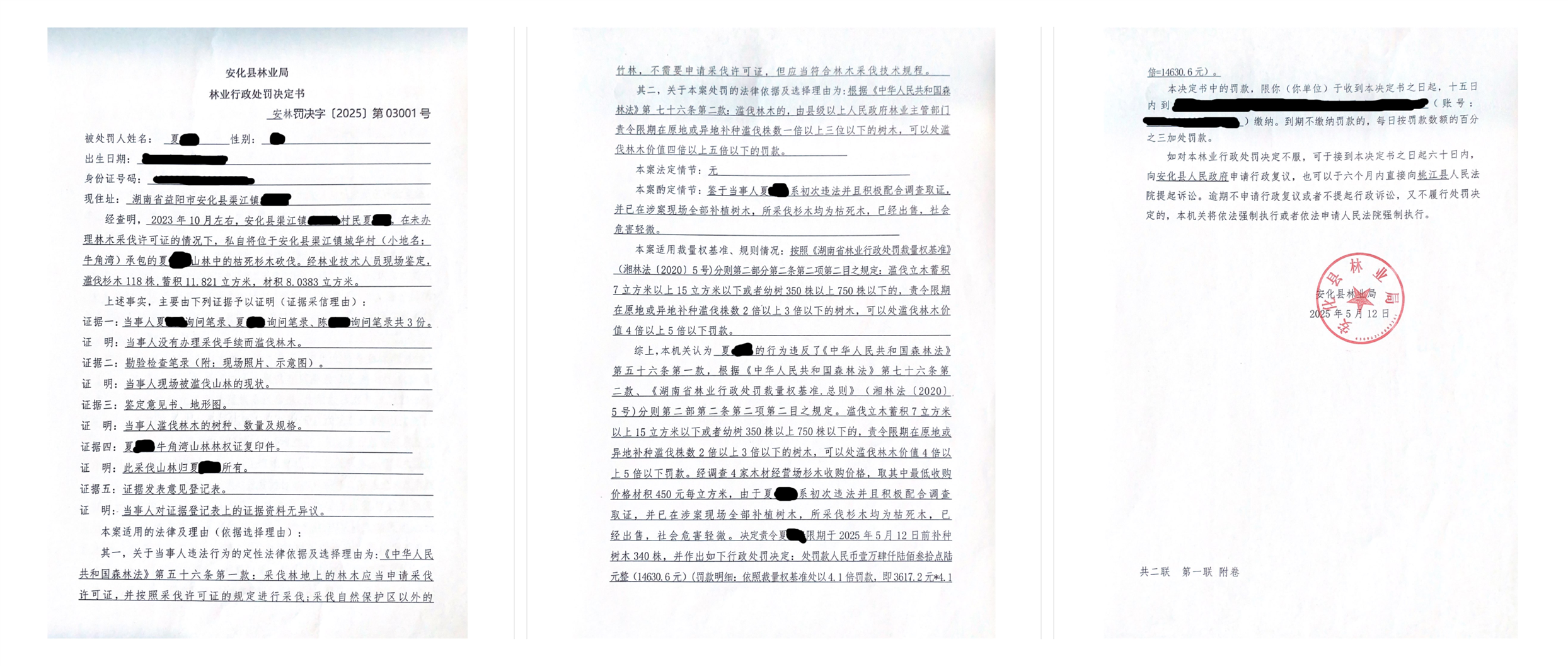 林业行政处罚决定书 安林罚决字〔2025〕第03001号