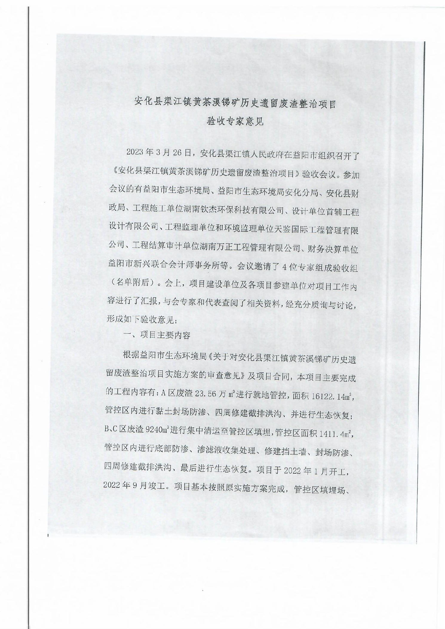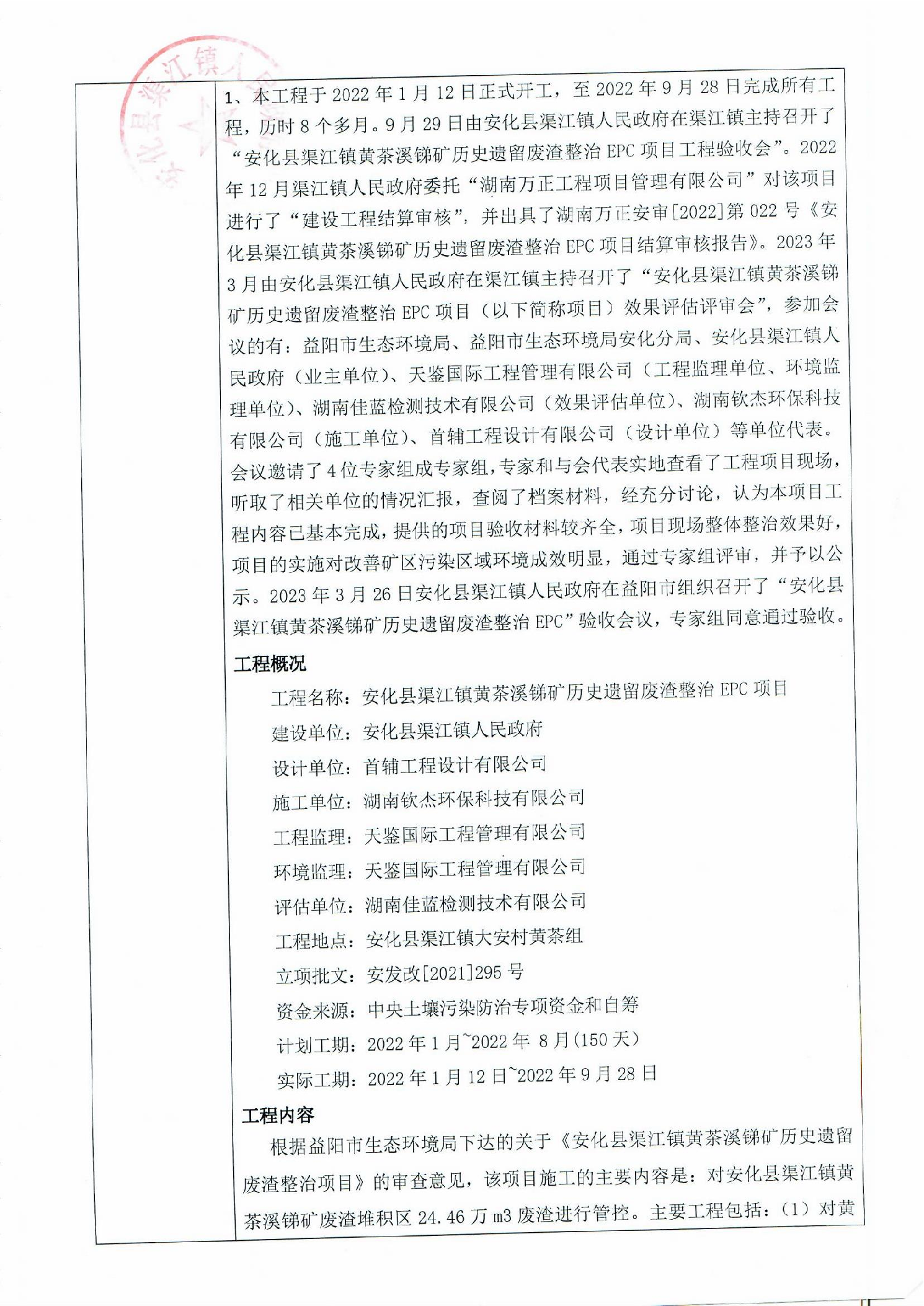 关于对《渠江镇黄茶溪锑矿历史遗留整治EPC项目》竣工验收的公示
