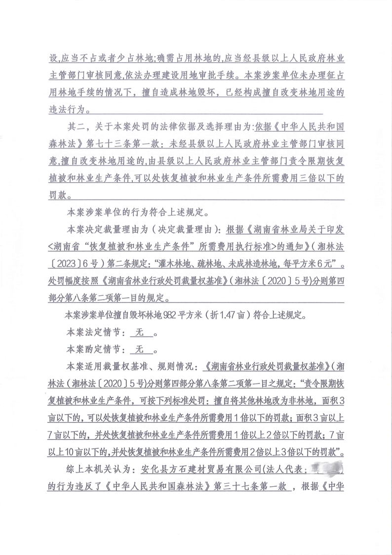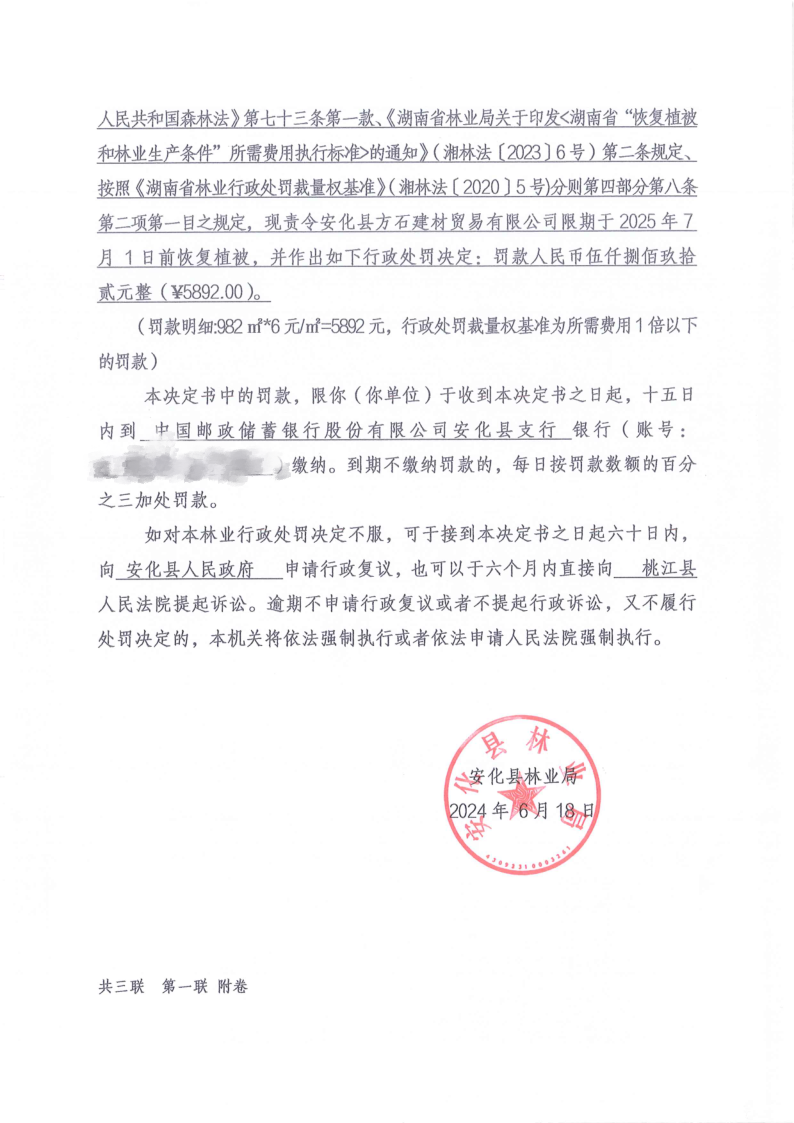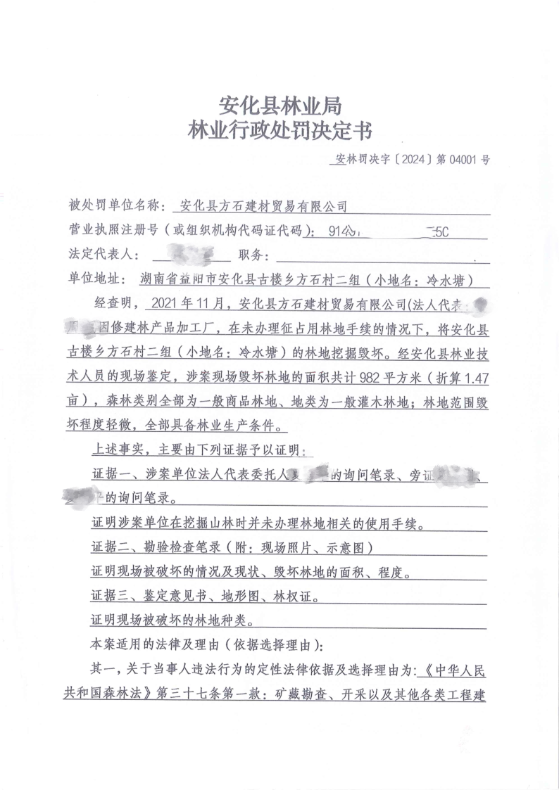 林业行政处罚决定书 安林罚决字〔2024〕第04001号
