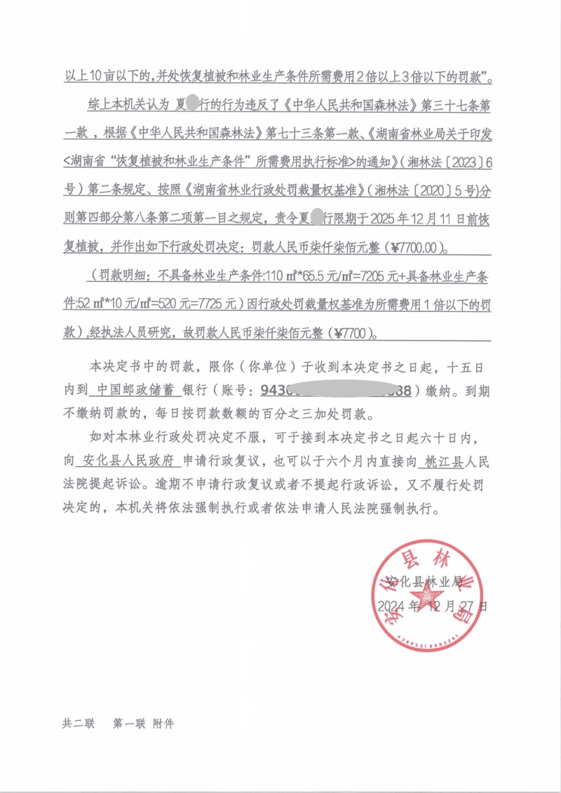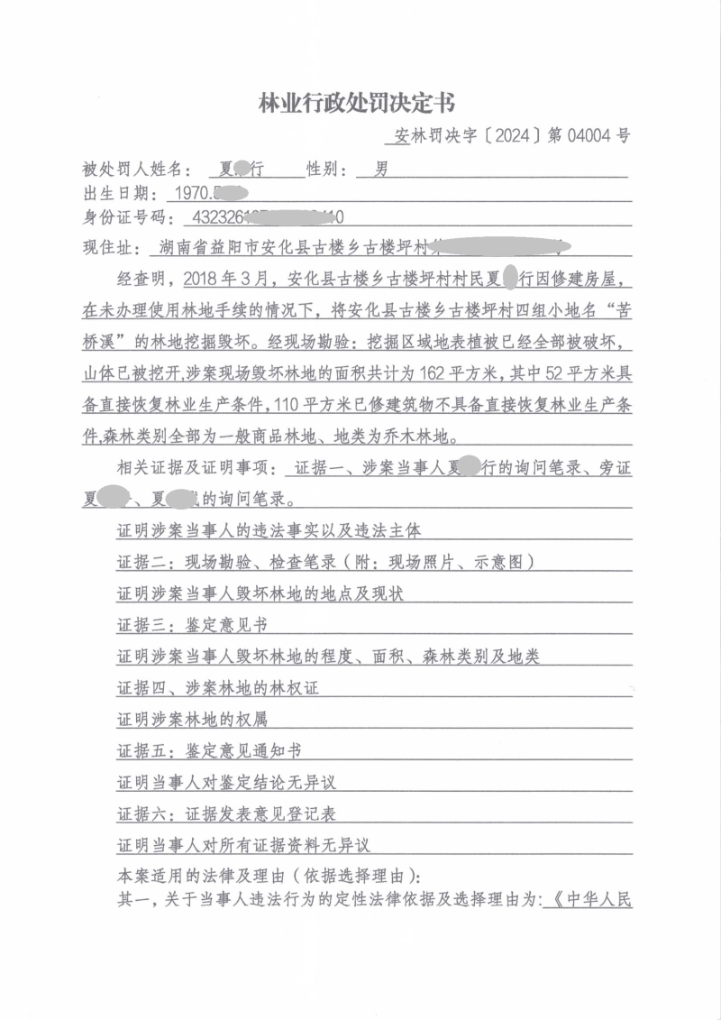 林业行政处罚决定书 安林罚决字〔2024〕第04004号
