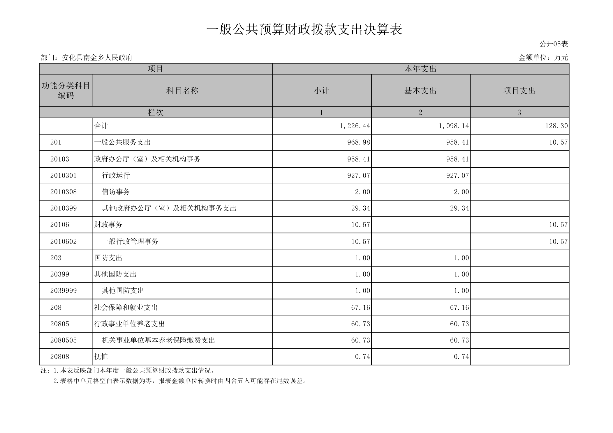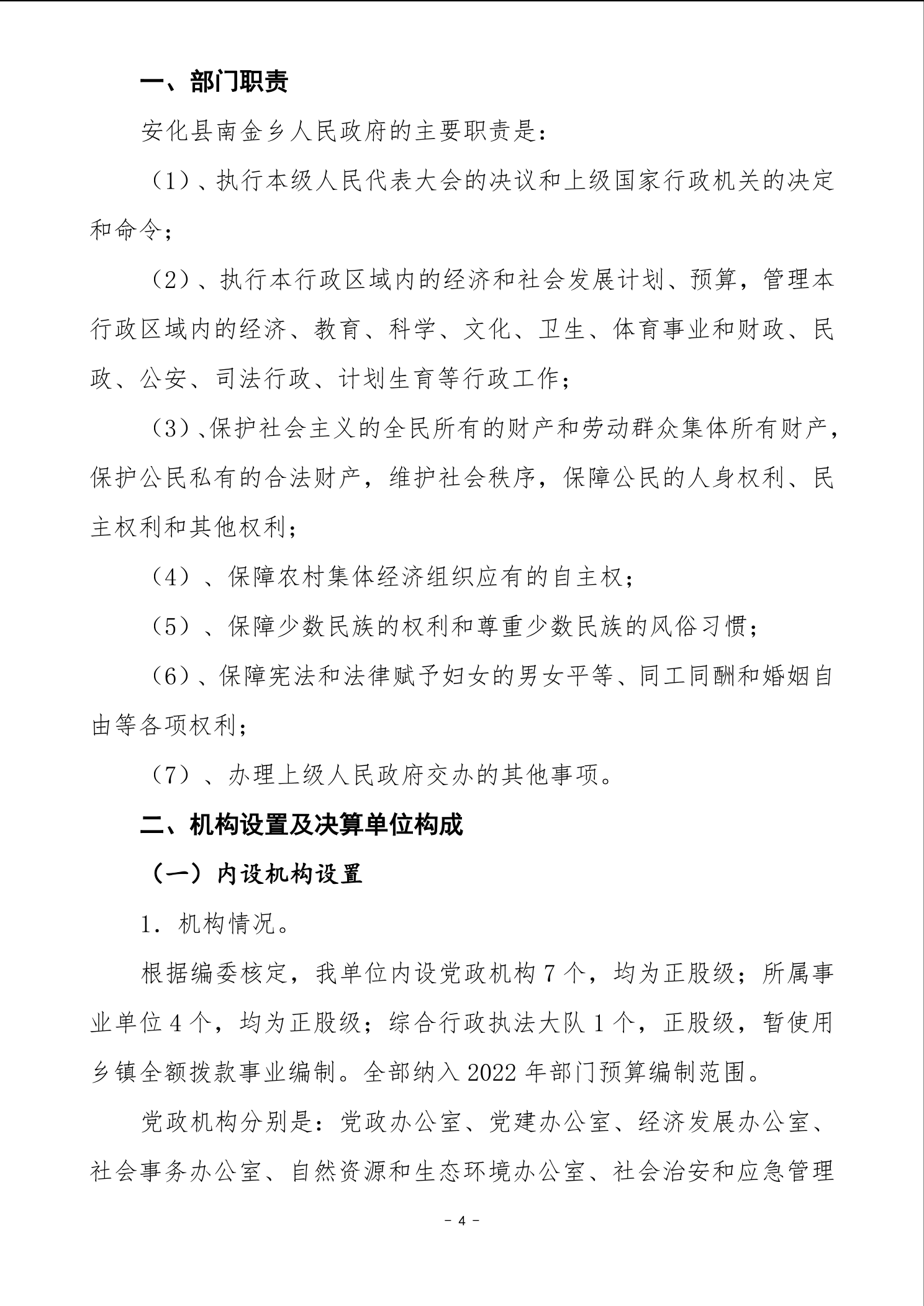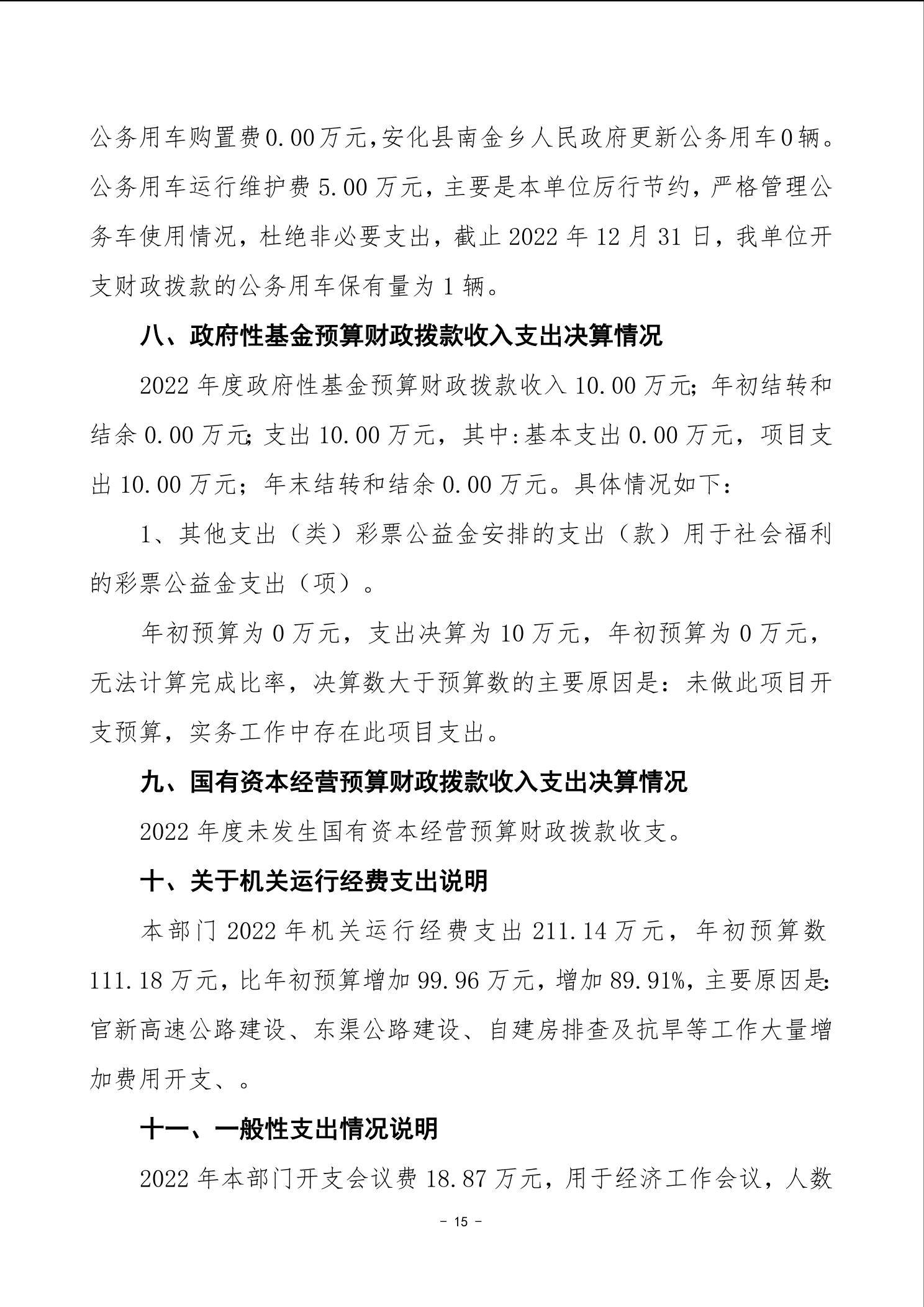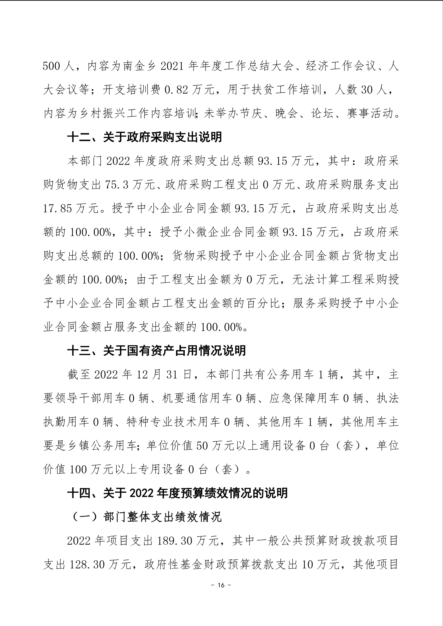 安化县南金乡人民政府2022年度部门整体支出绩效报告.doc