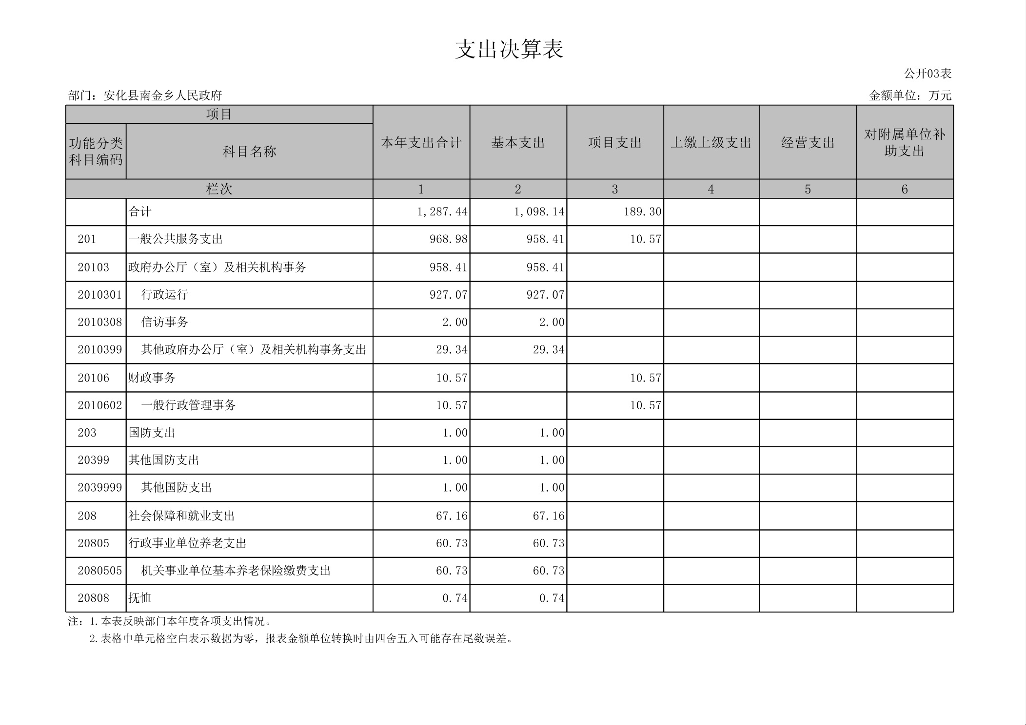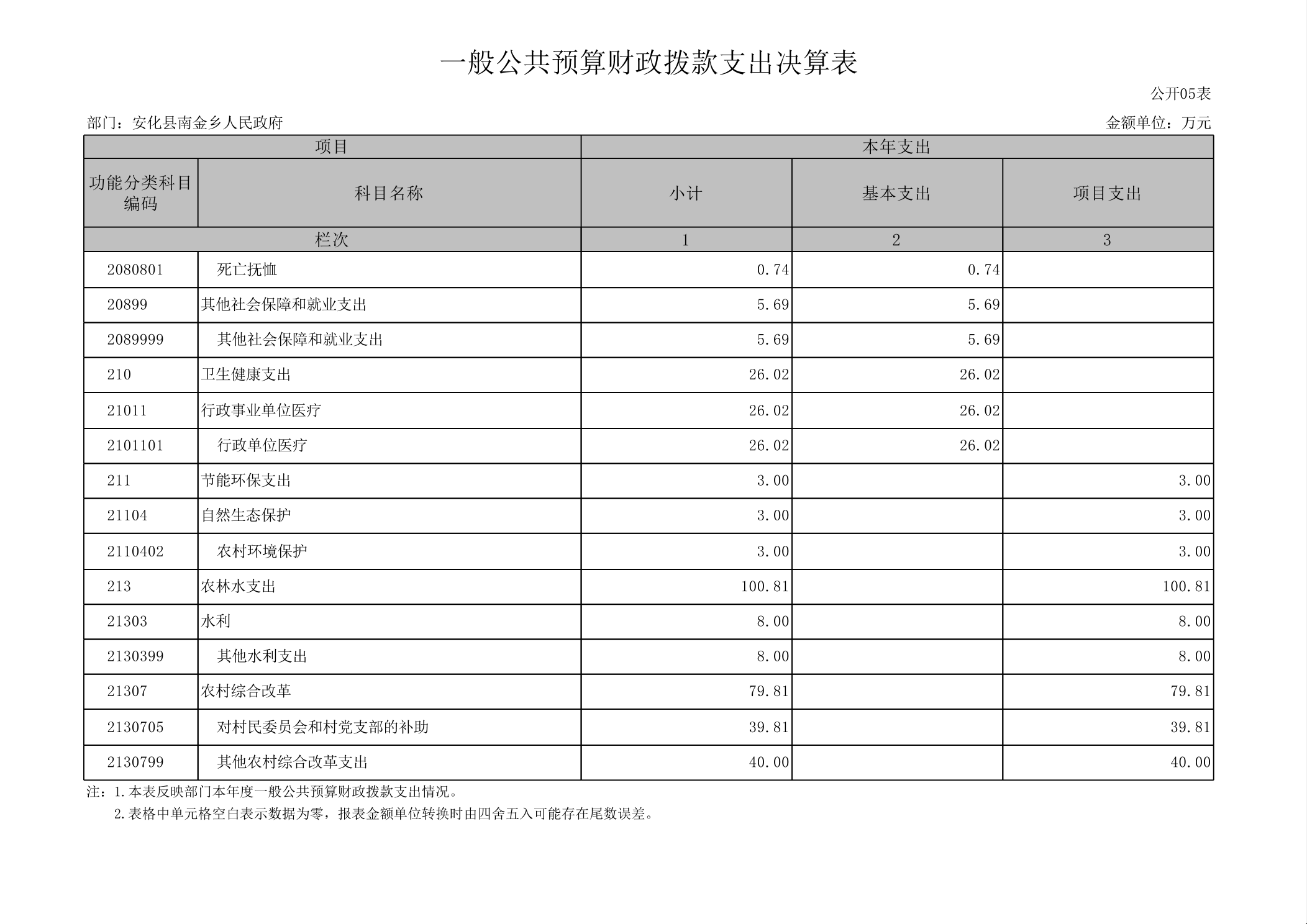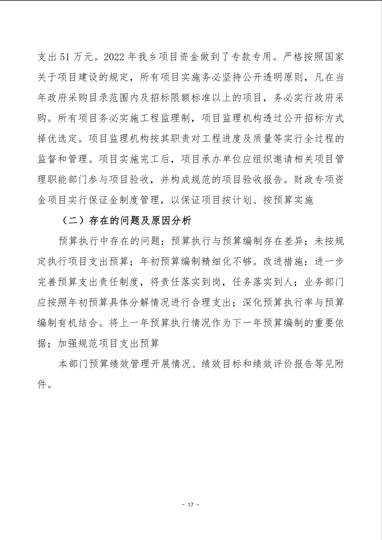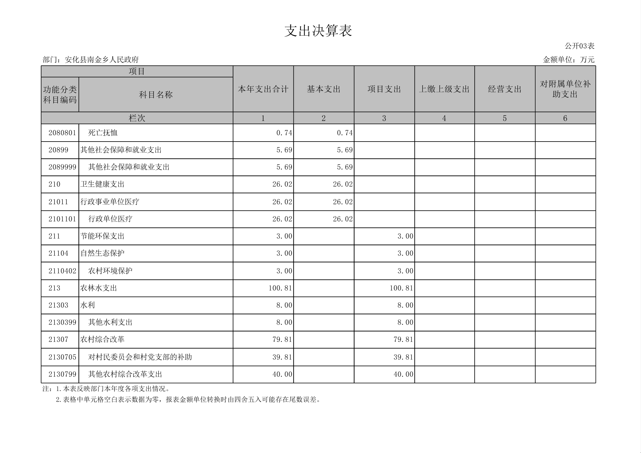 安化县南金乡人民政府2022年度部门整体支出绩效报告.doc