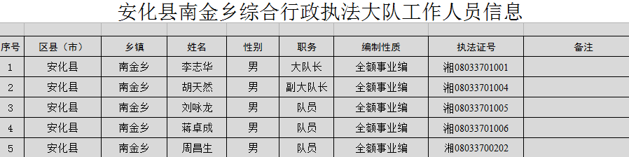 2022年安化县南金乡综合行政执法大队工作人员信息
