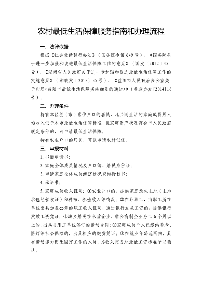 农村最低生活保障服务指南和办理流程