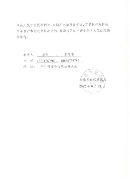 林业处罚决定书 (夏某)