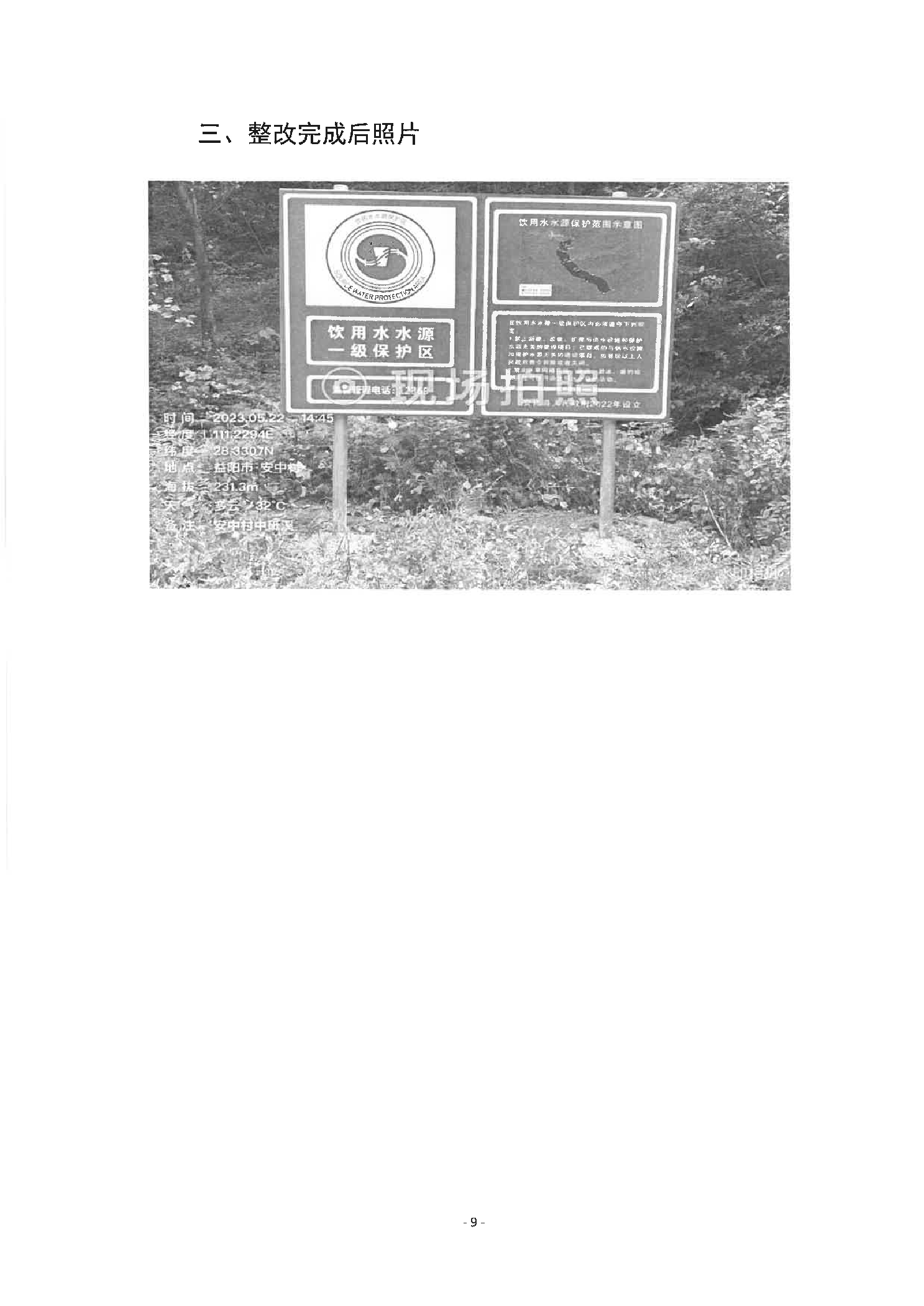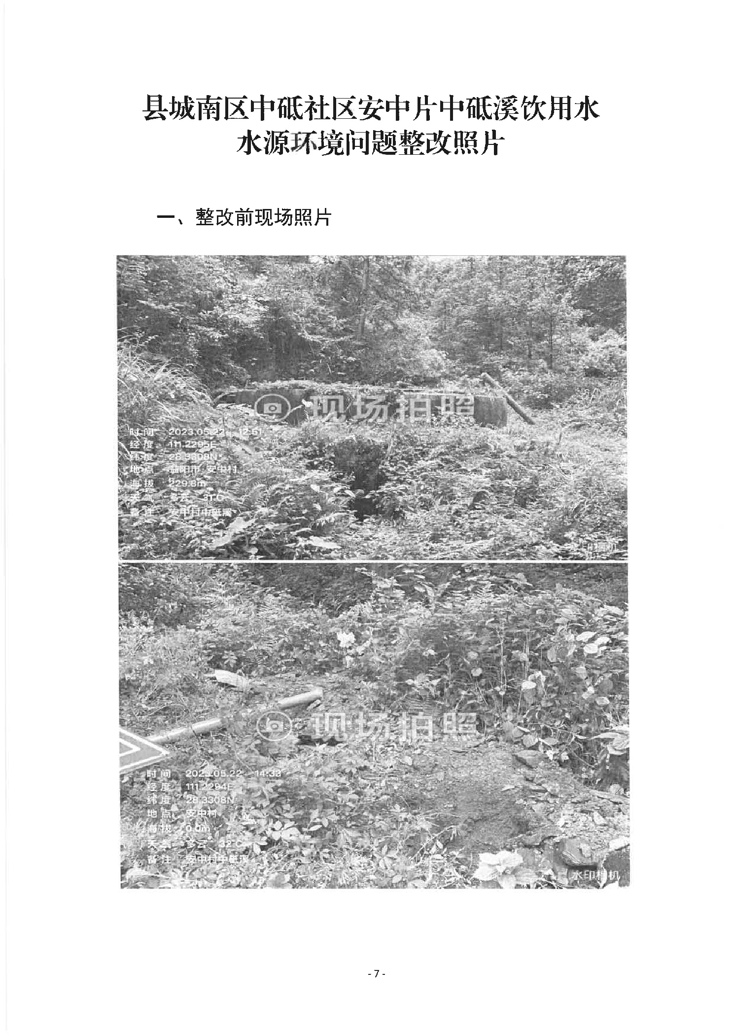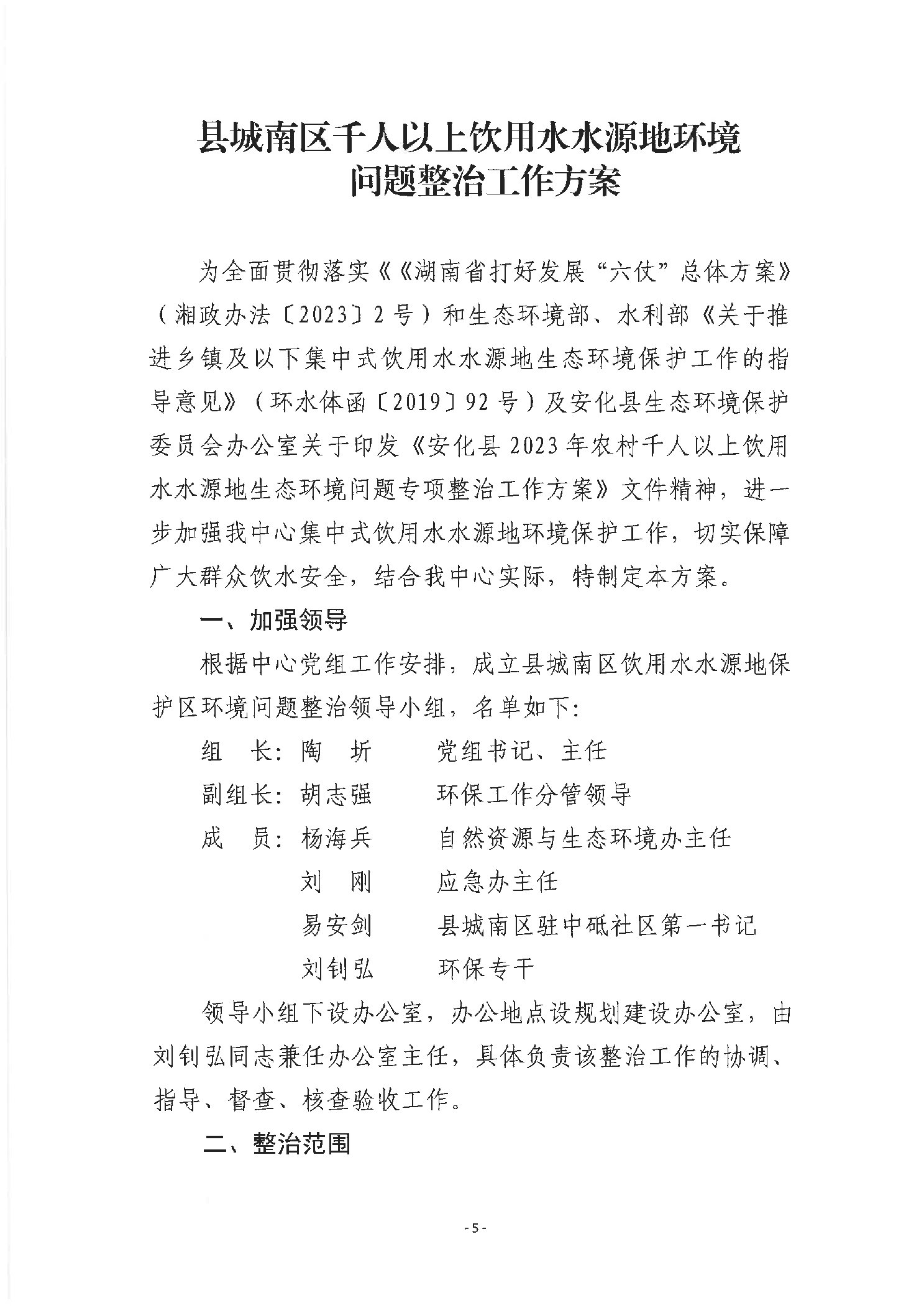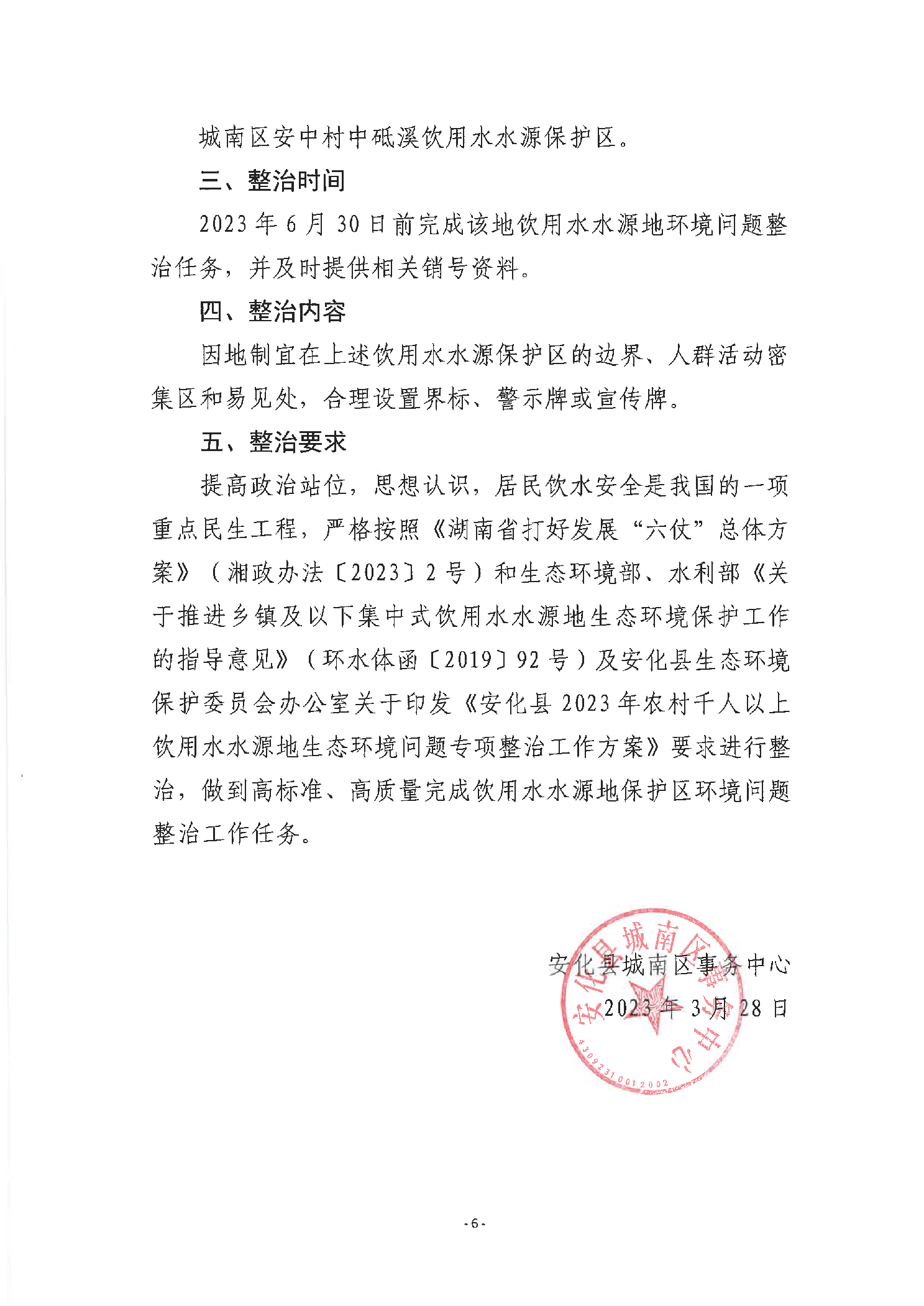 安化县城南区事务中心 关于千人以上饮用水水源地环境问题的 整治验收申请报告