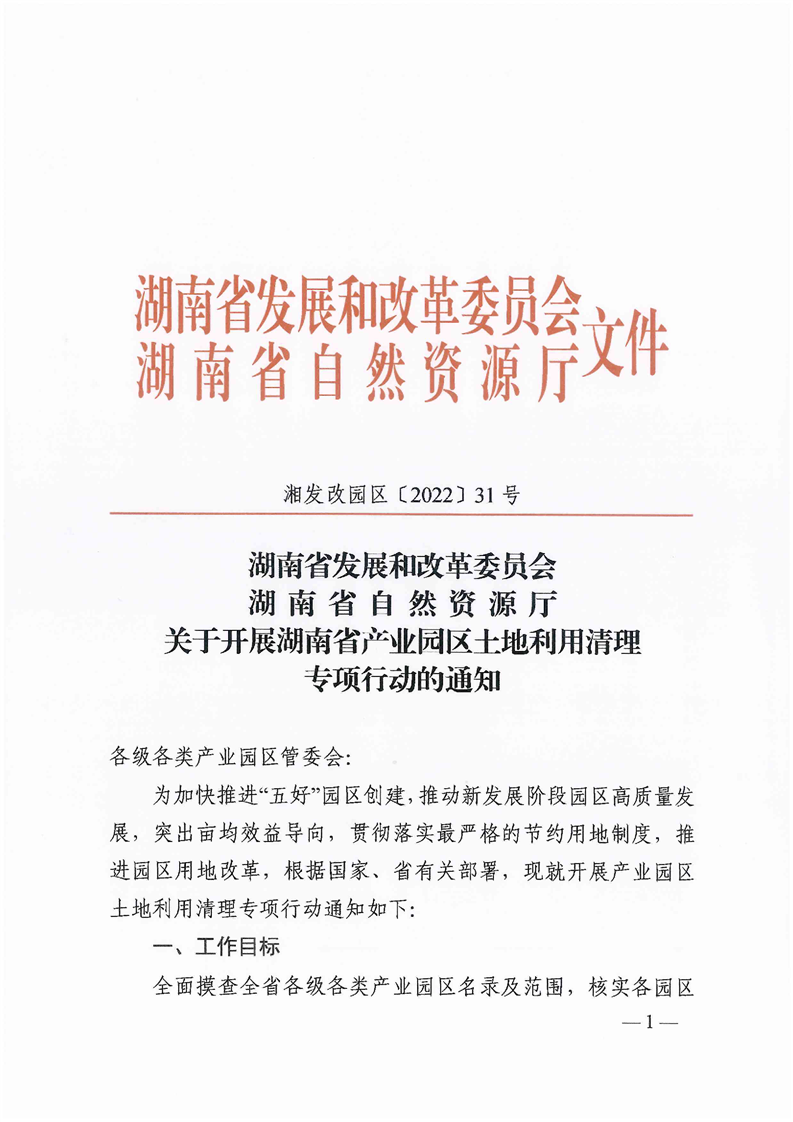 省发改委、省自然资源厅关于开展湖南省产业园区土地利用清理专项行动的通知