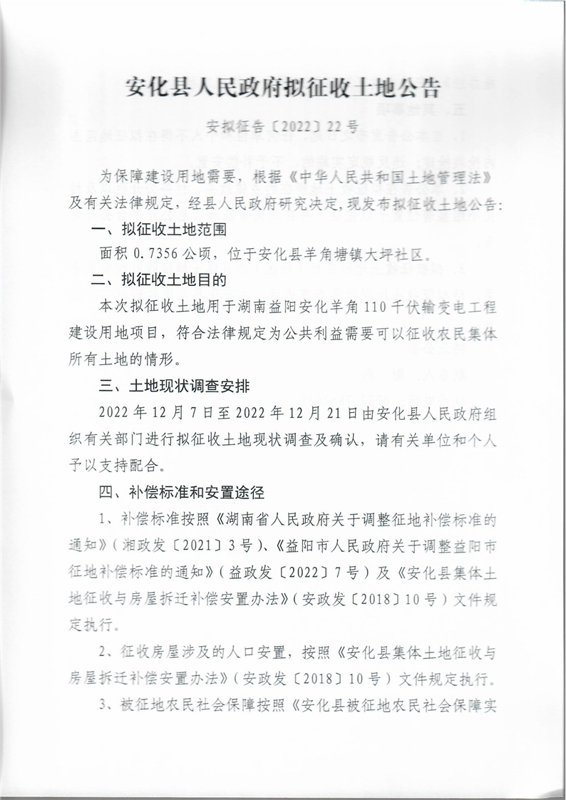 湖南益阳安化羊角110千伏输变电工程建设用地项目拟征收公告