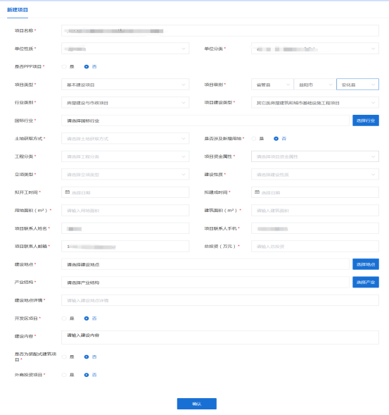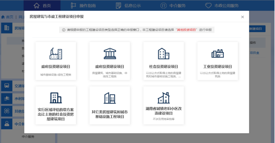2. 选择项目类别,政府项目请选择“政府投资建设项目”,民间固定资产项目请选择社会投资、工业投资或其他房屋建筑。